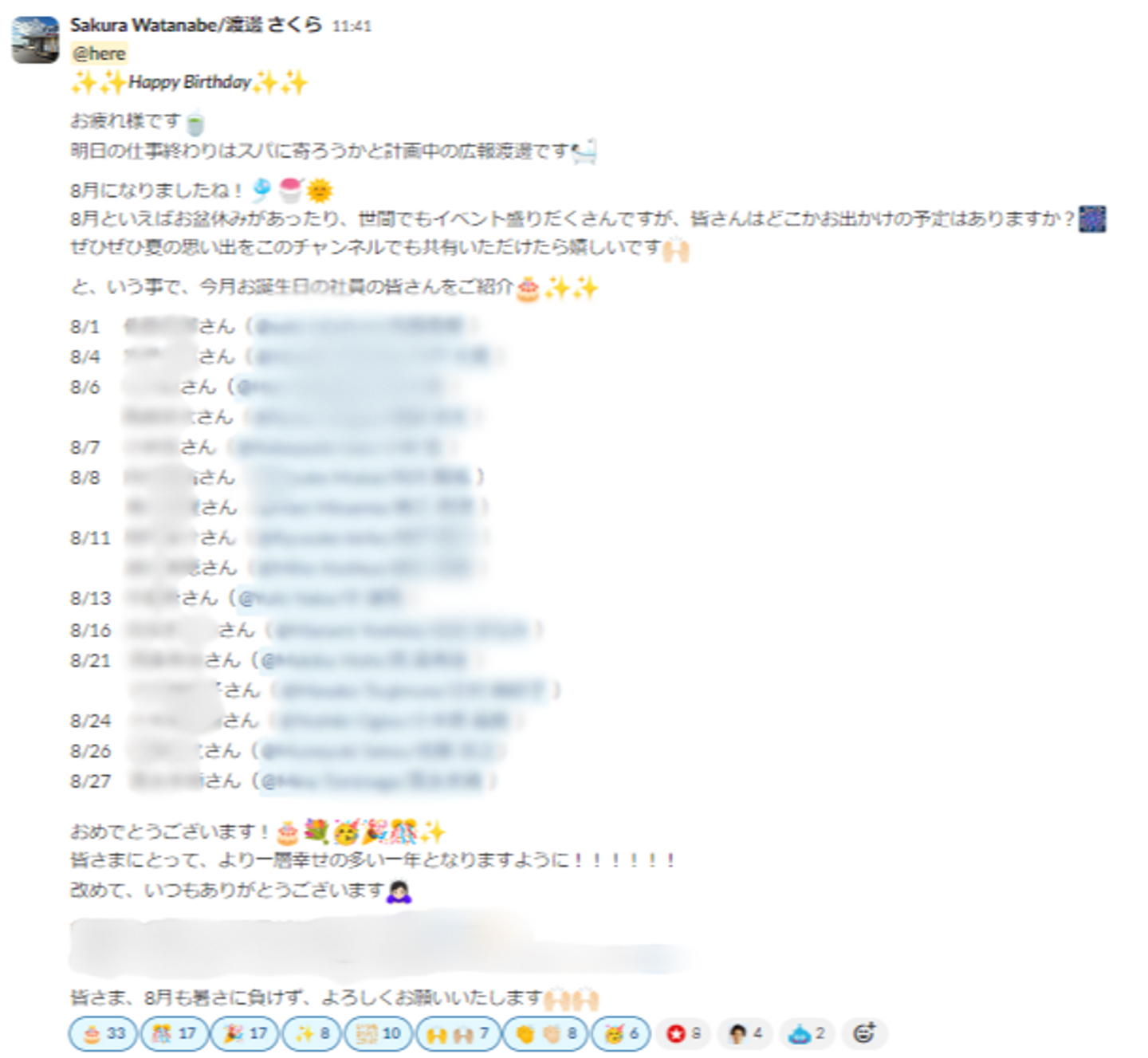 まだまだ弊社の社内コミュニケーションにおいては課題も多く、広報として今後さらなる活性化を図っていきますが、現時点でもslackチャンネルの活用は重要なツールとなっています。