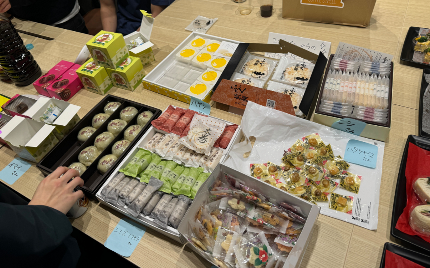 エンジニアの皆さんがお土産を買ってきてくださり、日本各地の銘菓が集まりました🍘🍬🍫🧀