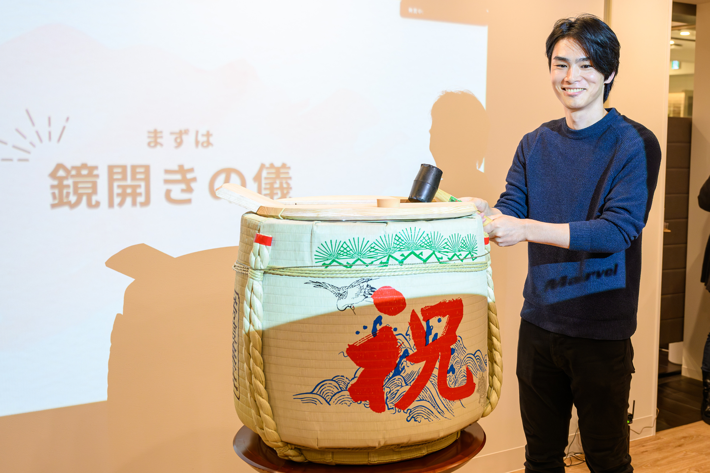 オフィス移転と4期目の終了を祝して、今後のMarvelの円満な運営と、参加者の皆さんの末広がりな運が開けることを祈願するために鏡開きを行いました ㊗