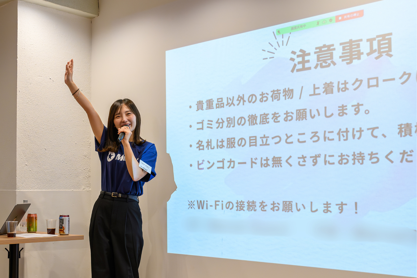 今回のイベントの企画運営チームである、ブランド戦略室の潮屋さんによる開会の挨拶と注意事項の説明の様子📢