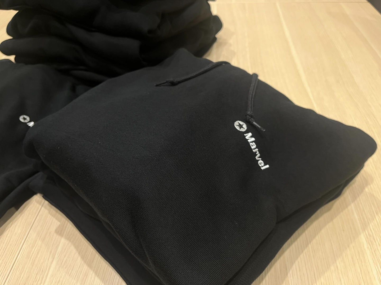 記念品として贈られた ✪ Marvel のロゴが入ったパーカー。入社式で実際に河畑さんが着用しています。