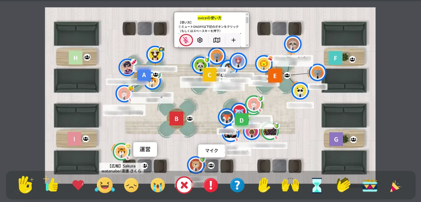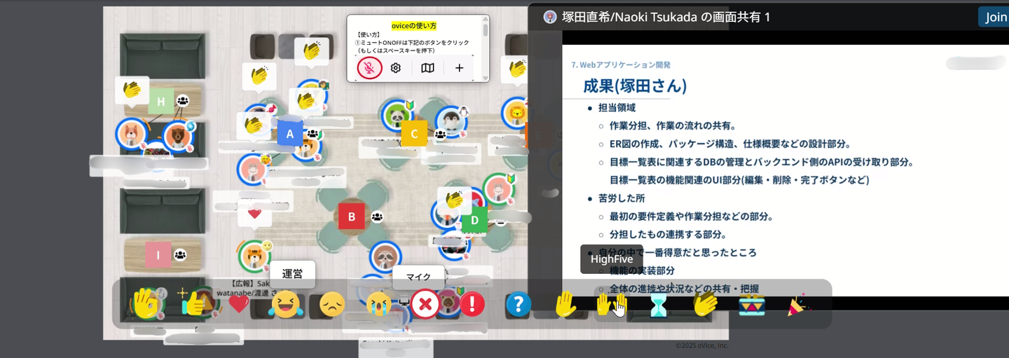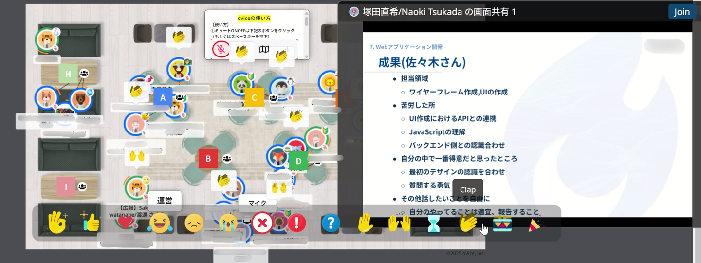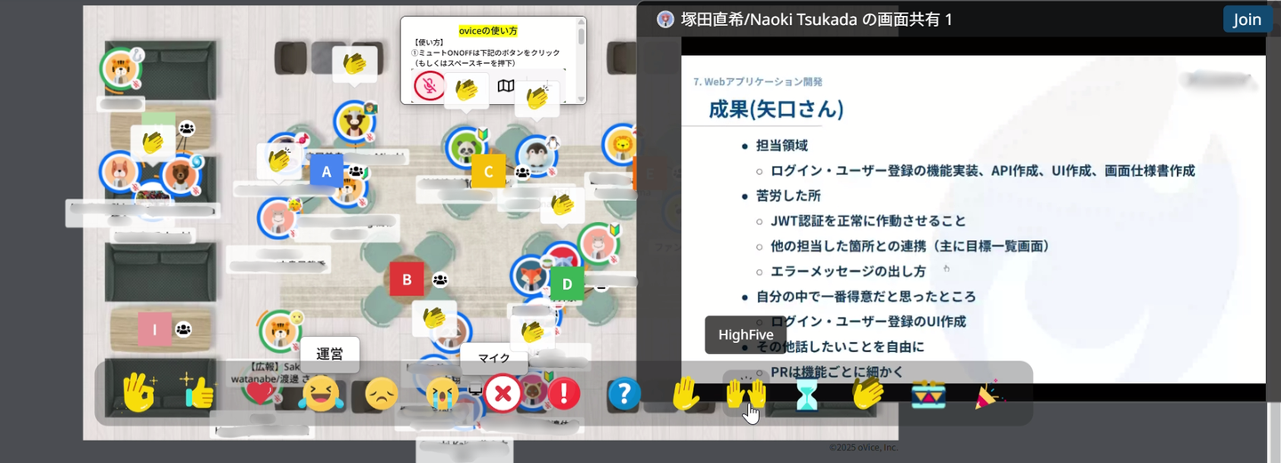 (oviceのリアクション機能を活用し、「👋」の数で順位を決めました)