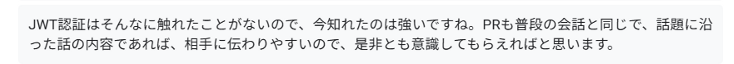 苦労した点として3名とも共通して挙げていたのが、「分担した箇所を連携したときの認識のズレ」でした。それぞれが黙々と担当領域を進めていたため、小さな認識の違いが積み重なり、修正に時間がかかる場面もあったようです。