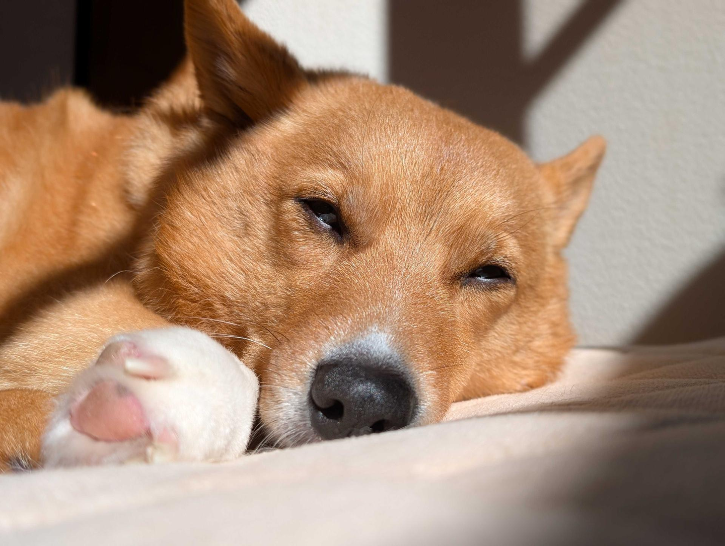 毛艶が美しいぐっすり中のむぎさん(5才)。