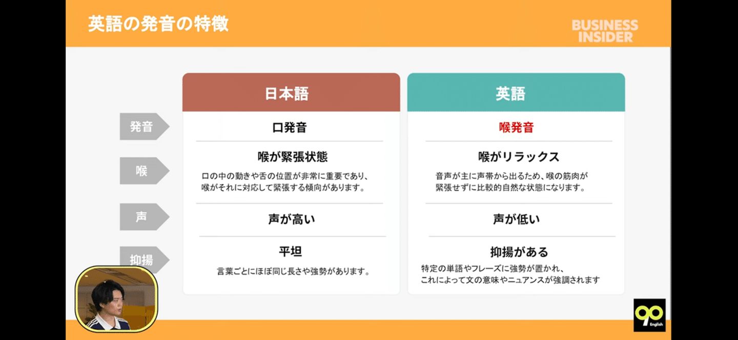 日本語と英語は発声の仕方から正反対(動画内から引用)