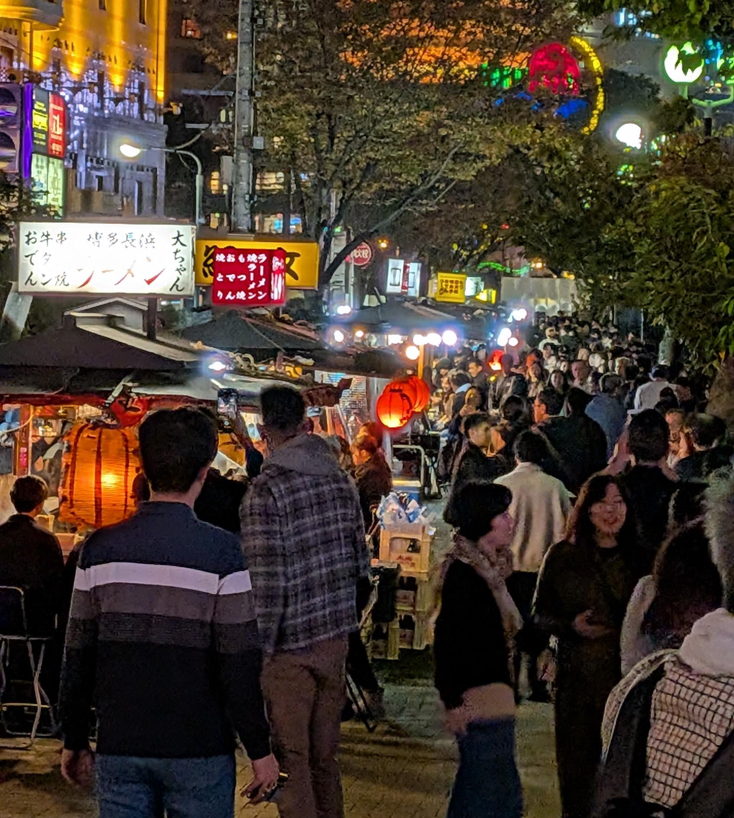 ラーメンで満腹になったら、〆は風情たっぷりの中洲の屋台通りへ!