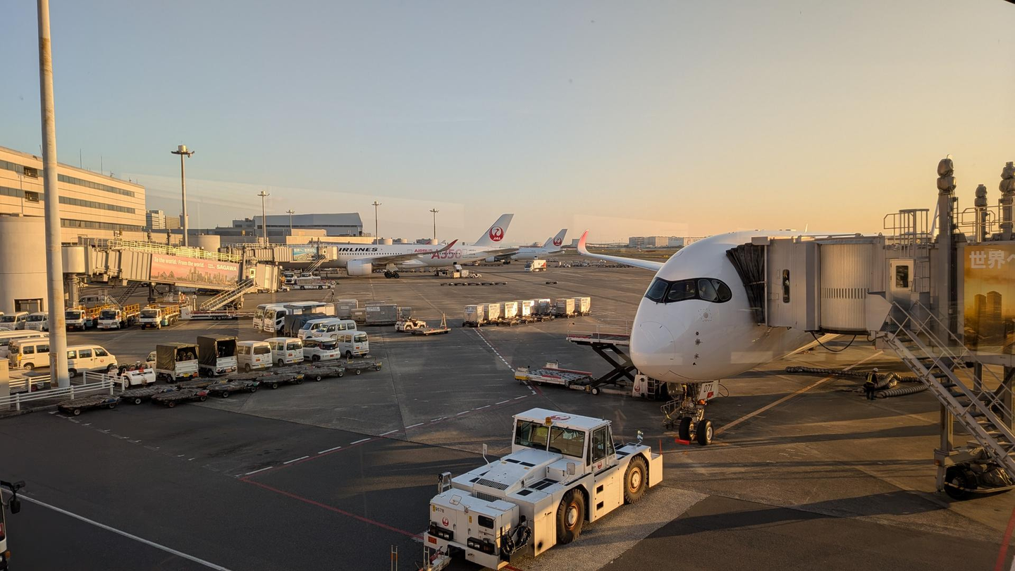 羽田空港の搭乗口で撮影した、飛行機に乗り込む直前の写真です。羽田空港に集合して飛行機で博多に向かいました。