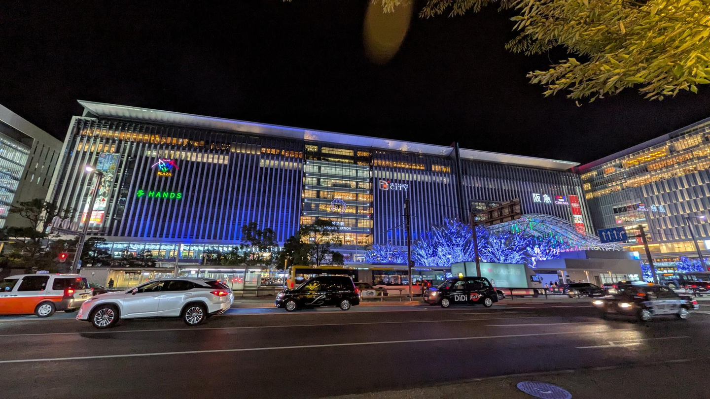 夜のイルミネーションに彩られている博多駅です。とても綺麗でした。