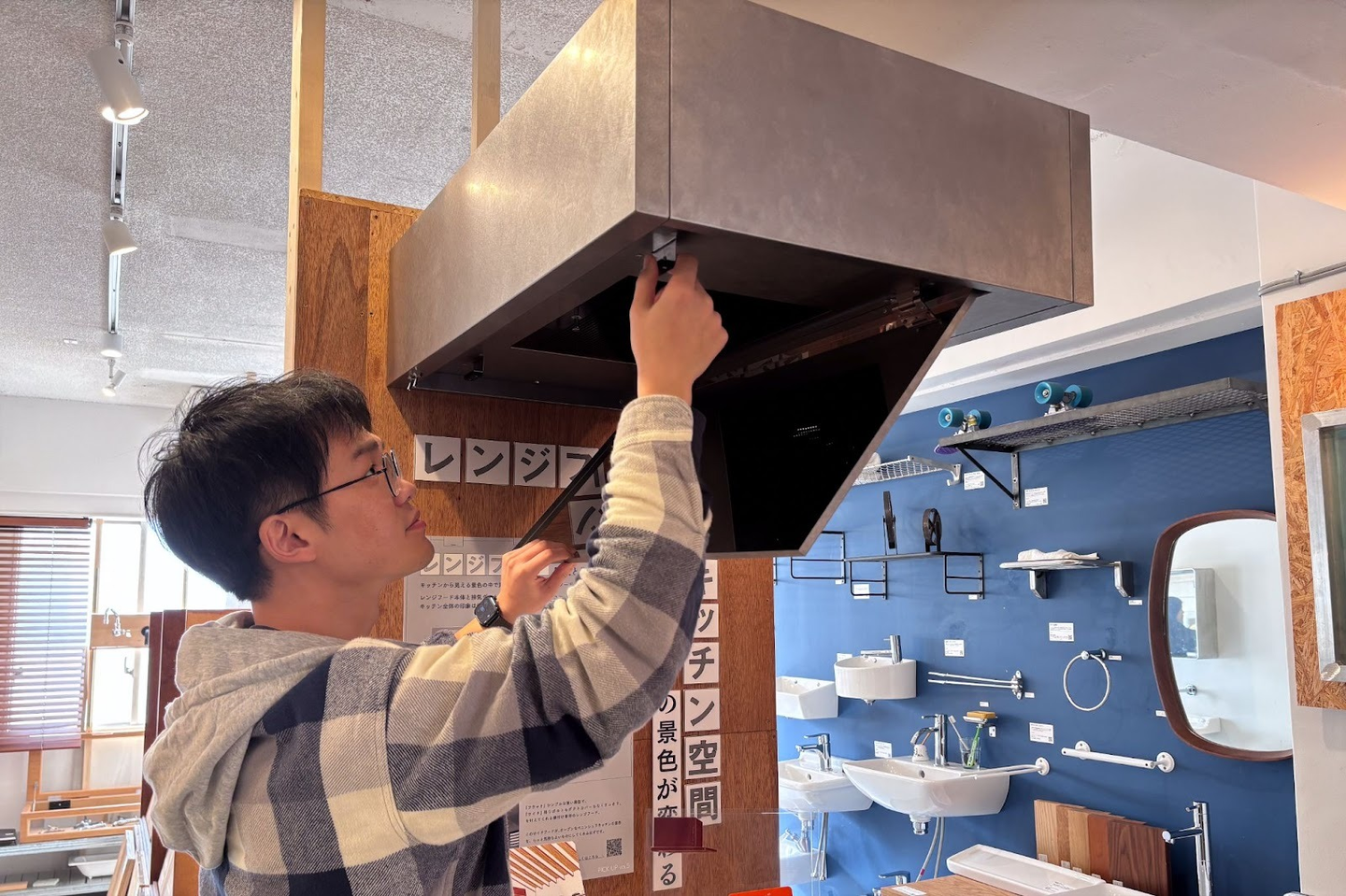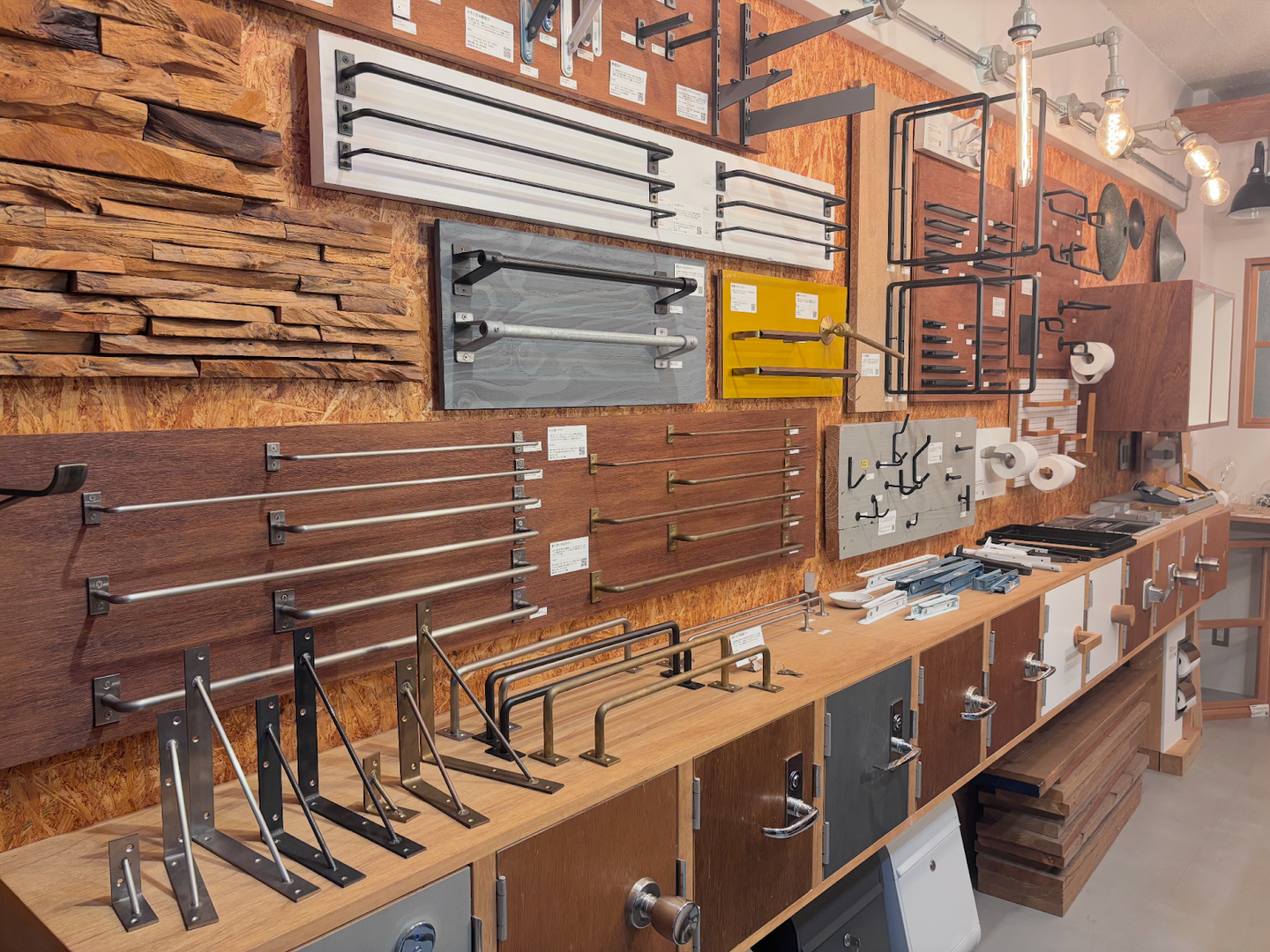 初めてショールームを訪れたとき、その物量に圧倒されました。限られた空間に所狭しと並ぶ多様な商品は、従来の建材ショールームとはまったく異なる光景でした。多くのショールームが商品を整然とカテゴリー別に並べたり、完成されたモデルルームを提示したりするのに対し、toolboxのショールームはあえて「雑多さ」を残し、独特の体験を生み出しています。