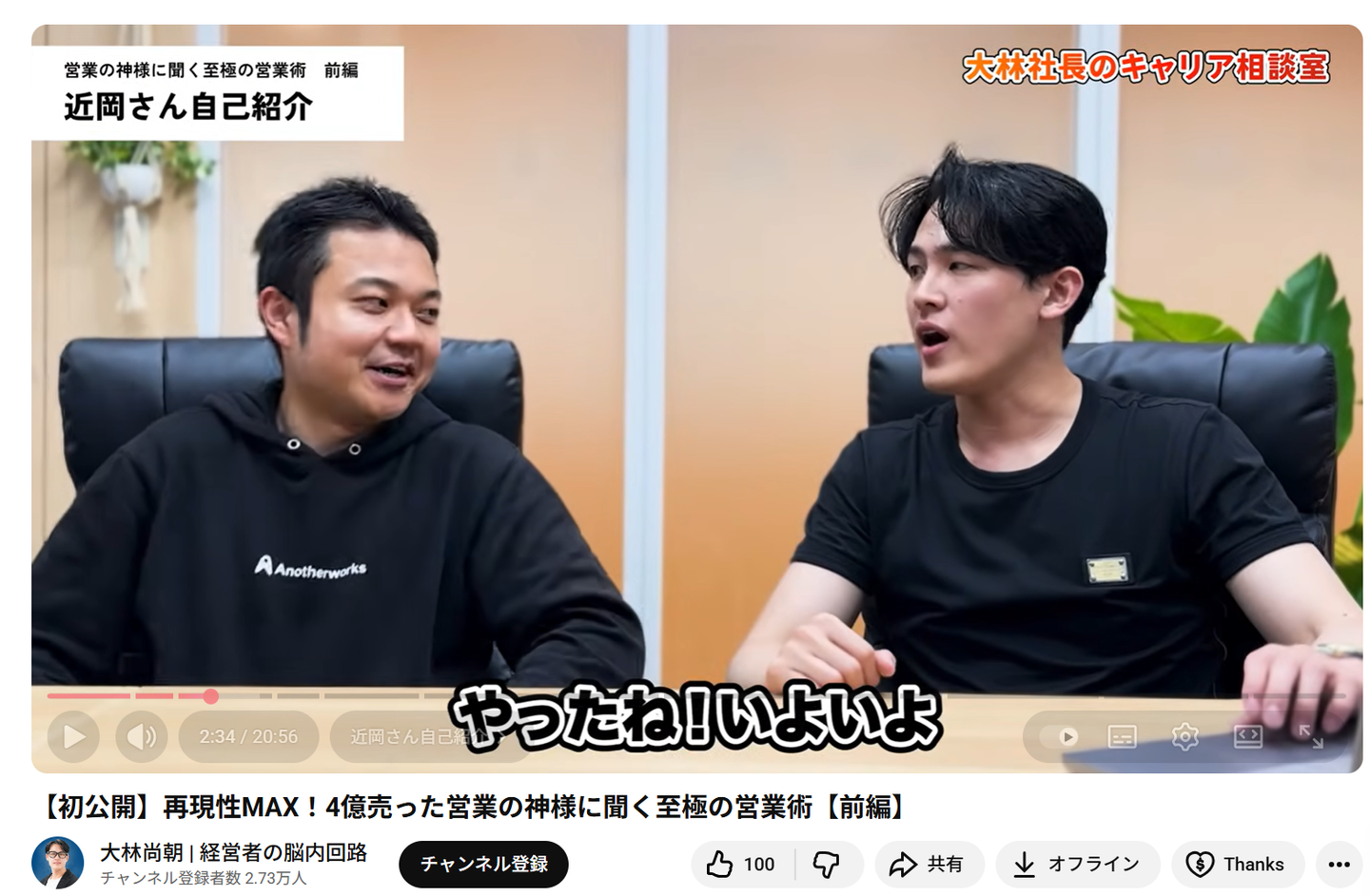 ※ 代表大林さんのYouTubeチャンネル第1号ゲストでした。