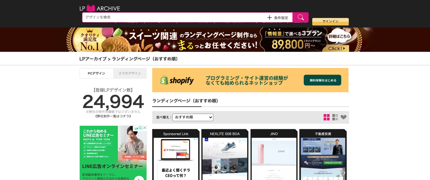 PCデザイン・SPデザイン共に探すことも可能。デザインに迷った時はお世話になっています。