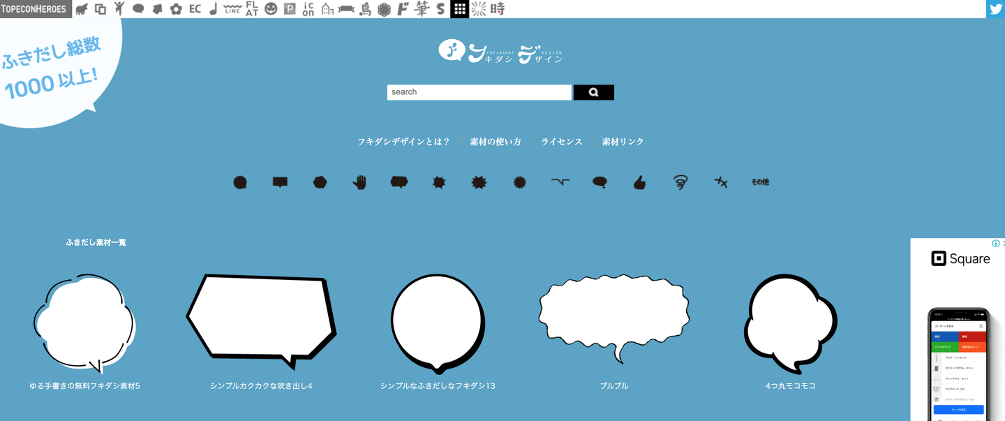 いろんなパターンの吹き出しがpngやsvgでダウンロードできるサイトです。手書き風や漫画風などバリエーションが豊富です。
