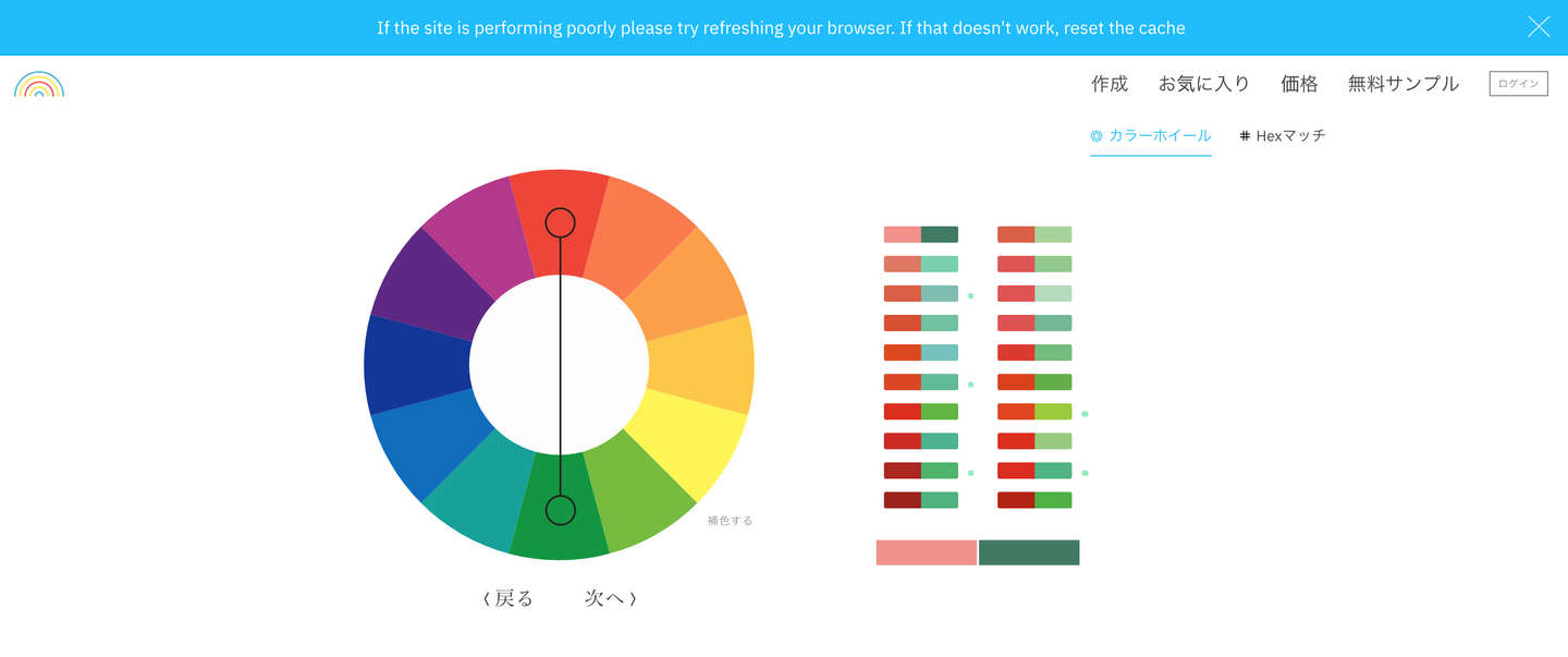 類似色やトライアド、補色など様々なパターンでカラーを表示してくれるので便利。