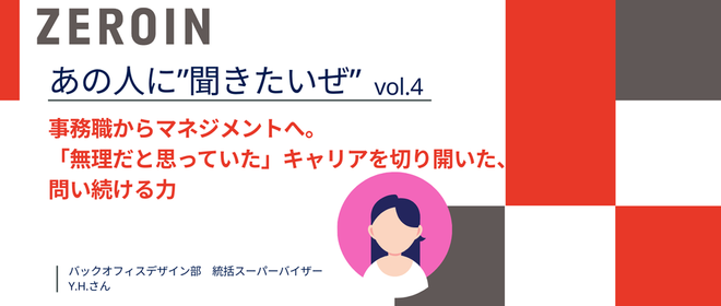 こんにちは! 株式会社ゼロインの小嶋です。 今回ご紹介するのは、バックオフィスデザイン部(以下、BD部)で統括スーパーバイザー(以下、SV)として活躍するY.H.さんです。ゼロインに入社後、2社のお客様先に常駐しながら総務の実務経験を積み、現在はチームメンバーの育成からお客様との関係構築まで幅広く担う存在。「現場の声を大切にする」というゼロインの文化を、誰よりも体現しているメンバーのひとりです。 「事務スキルを積みたい」という気持ちで入社したはずが、気づけばマネジメントが「いちばん好きな仕事」になっていた――。」 そんなY.H.さんのキャリアストーリーには、「ただこなすだけじゃない、自分...