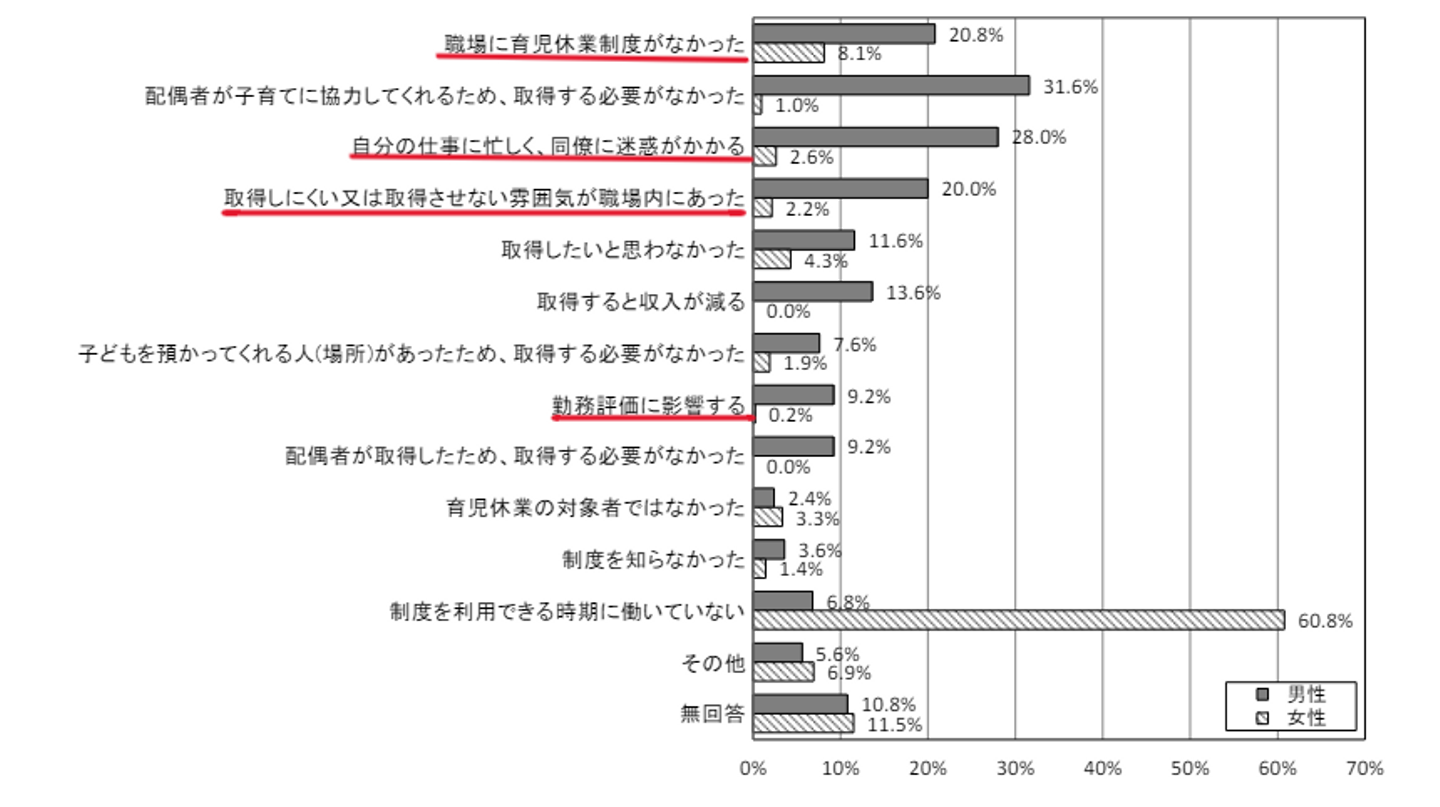 ・育児休暇を取りづらい理由(男女別)※厚生労働省HP抜粋
