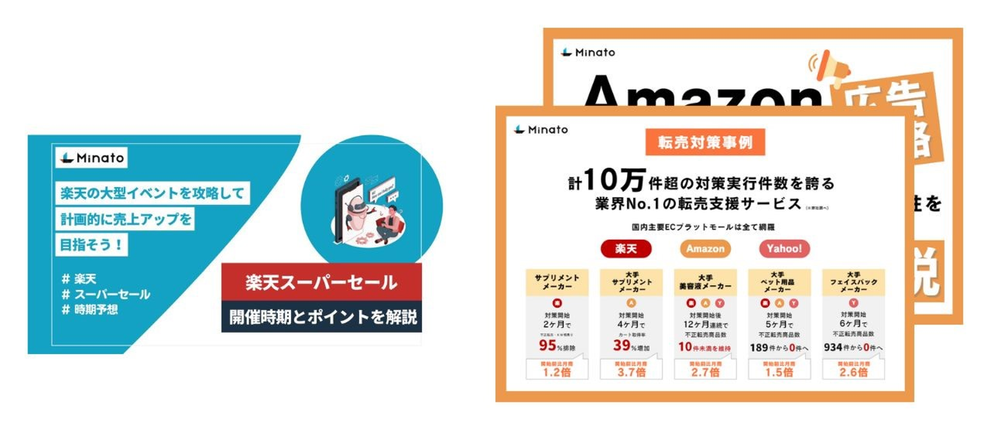 <Tashiroさん作成の「EC運用コラム」アイキャッチ画像と「お役立ち資料」のページ>