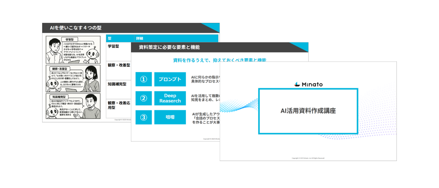 Minatoの社内研修「AI活用資料作成講座」のスライドから一部を抜粋