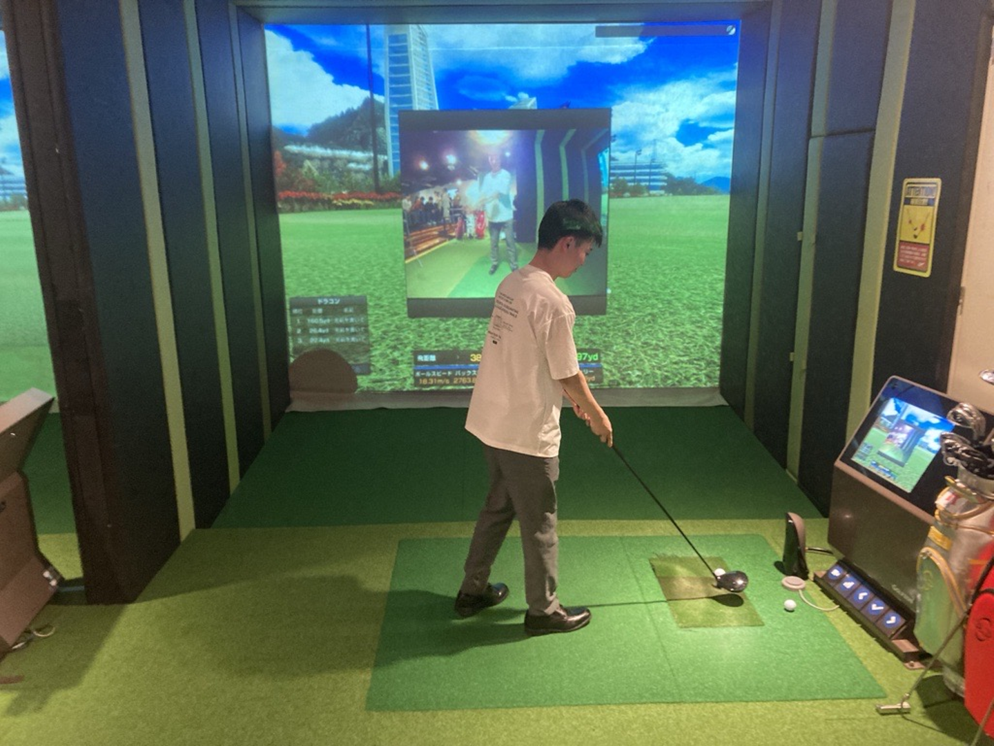 そして・・・シミュレーションゴルフはほぼ全員未経験ではあったものの、数少ない経験者からクラブの持ち方や打ち方をレクチャーしてもらいながら、全員で楽しめました。最後は景品ありの飛距離大会も実施しました!