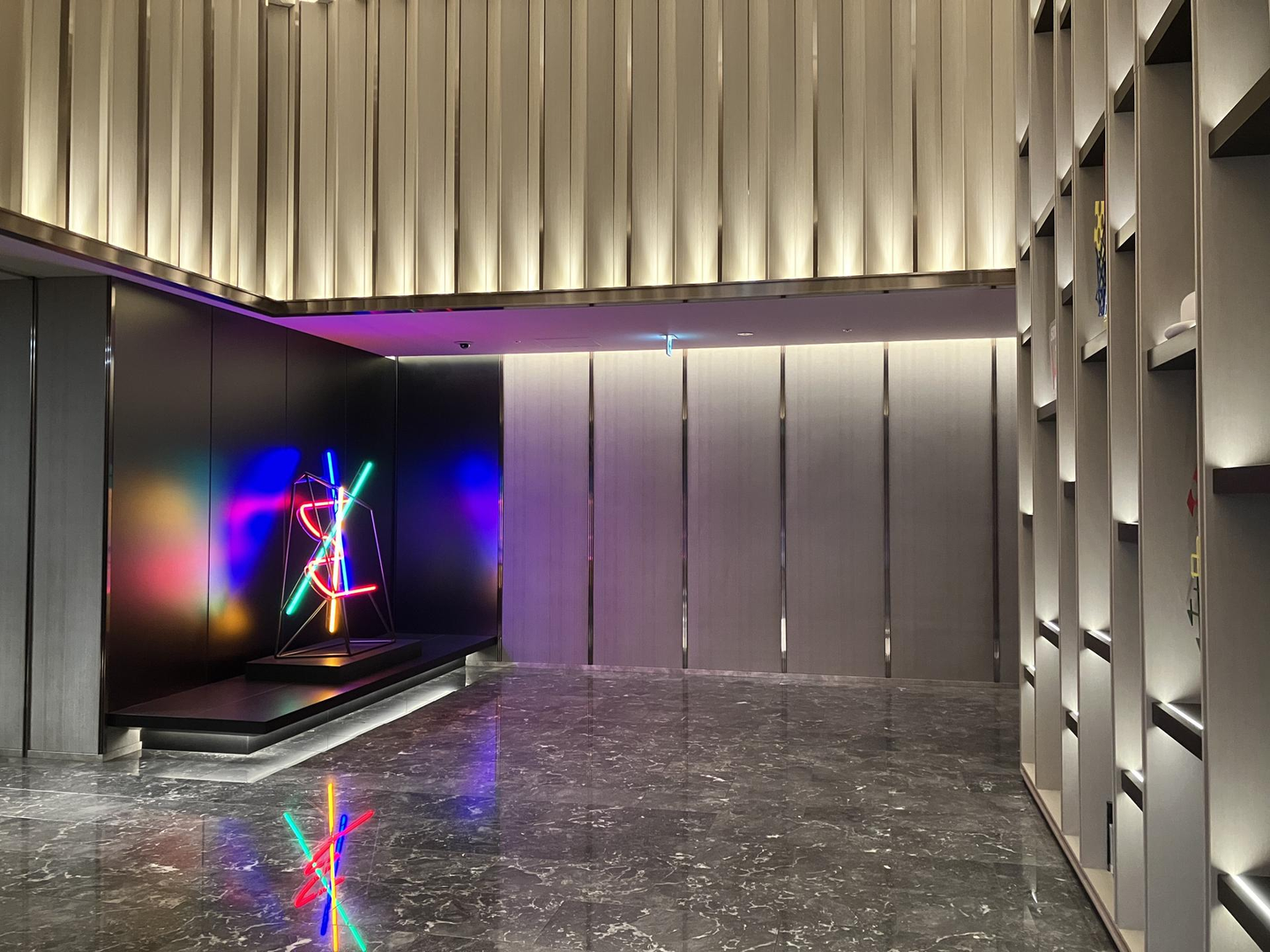 元はホテルだった建物を活用したシェアオフィスということもあり、広々とした開放感のあるロビーです。奥にはオフィス名を象ったモニュメントも飾ってあります。私は初めて来た時は綺麗さとおしゃれさで感動しました!