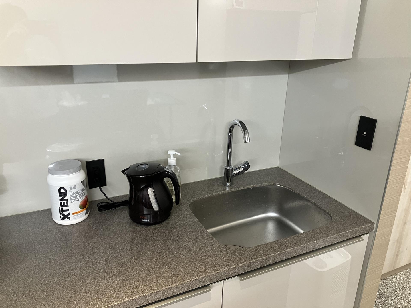 キッチンや冷蔵庫もあるので快適に過ごすことができています。私はよくプロテインを作って飲んでいます。