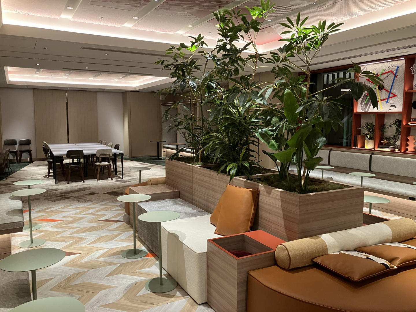 別のフロアにはシェアスペースのラウンジもあり、気分転換にこちらで作業することもあります。自社以外の方もいらっしゃるので、刺激を受けながら仕事をすることもできます。