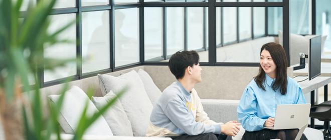 20代のメンバーが多く活躍している中でもインターンからそのまま新卒として入社するメンバーも多くいます。オープンなコミュニケーション環境がありフラットで正当な評価制度を運営し誰もが納得して成長していくことができます!