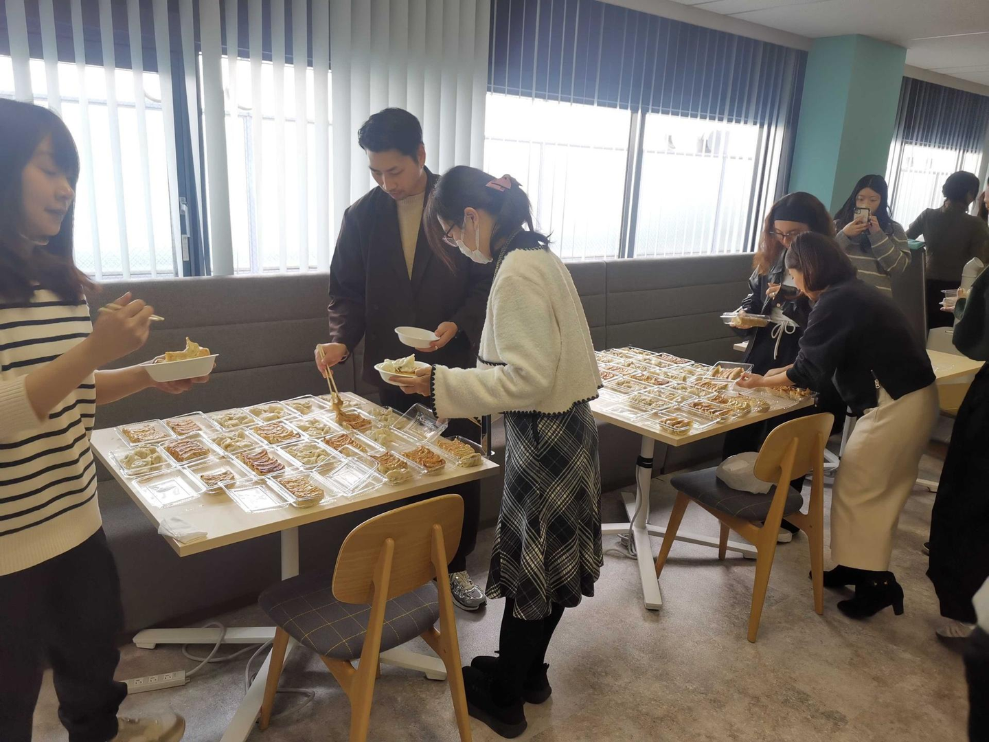 バックオフィスのメンバーが、従業員のために焼き餃子と水餃子の両方を用意し、皆で楽しみました。