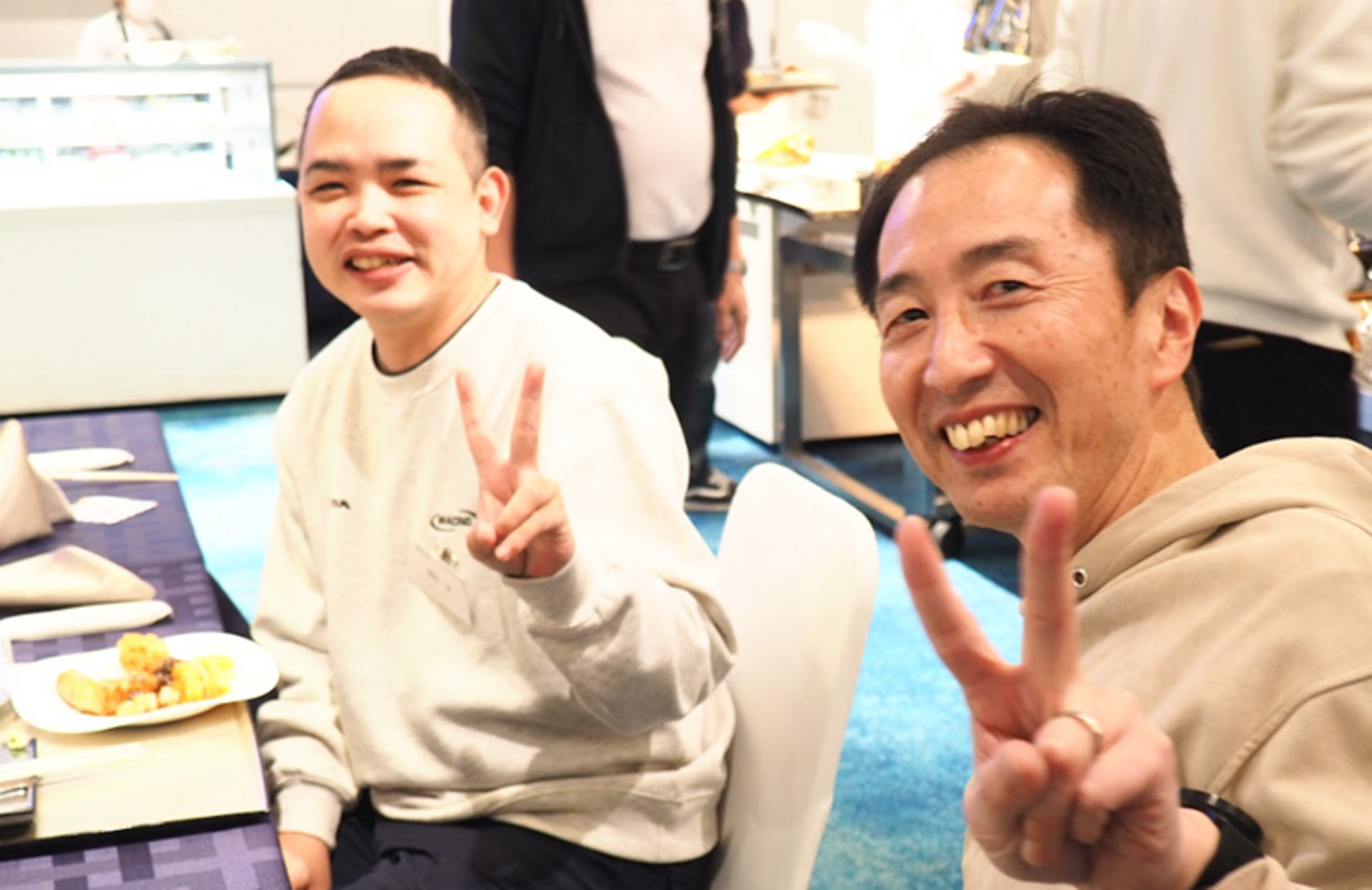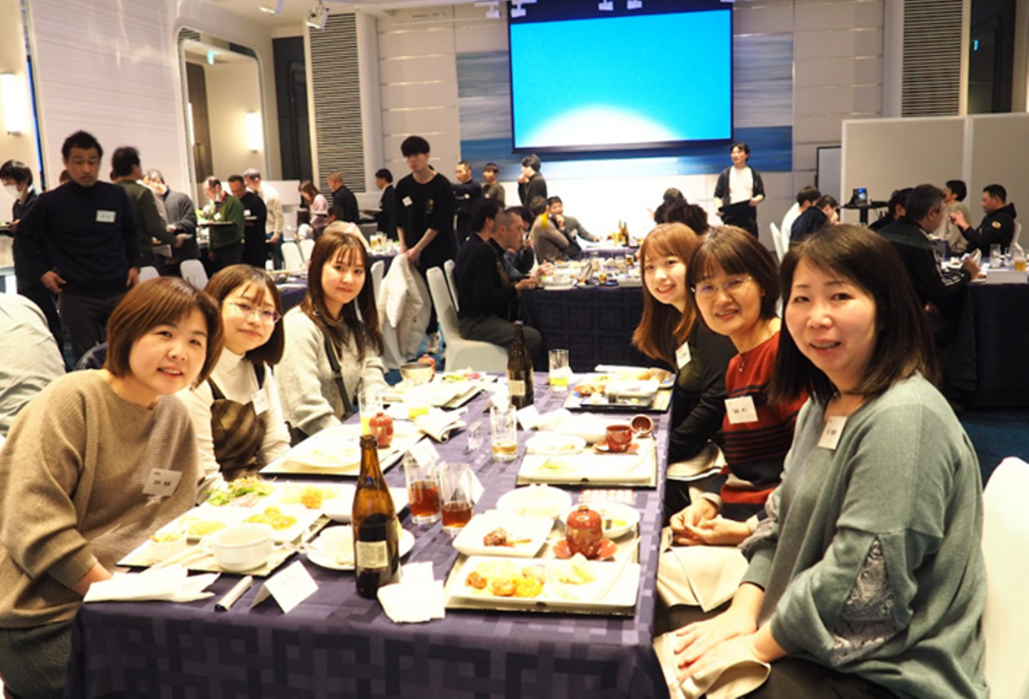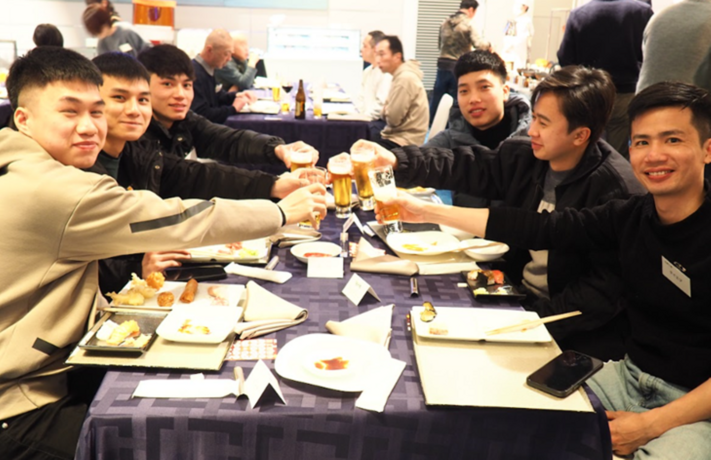 それぞれのテーブルの様子です!こちらは本社工場のみなさん!ご出身はベトナムです。彼らはマラソン大会など、吉銘参加のイベントに積極的に顔を出してくれるので、広報として、とても助かっています(笑)。