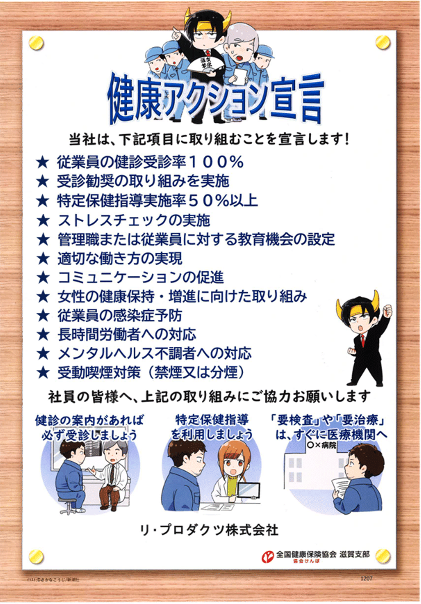 お客様にも、社会にも、そして従業員にも良い効果を生み出す会社となるよう、リ・プロダクツ株式会社は健康アクションを宣言します!