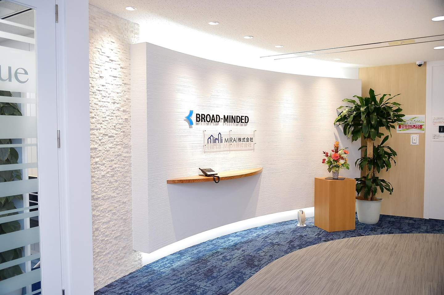 エントランスブロードマインド東京本社はJR恵比寿駅すぐのJR恵比寿ビル7Fにあります。