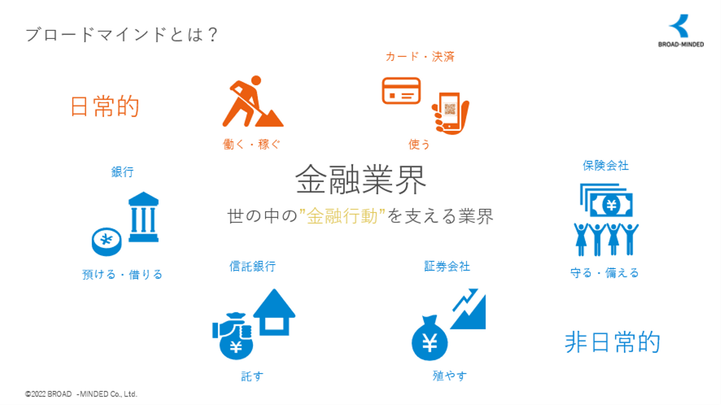 本記事では、ブロードマインドの魅力を説明会でお伝えする前に是非知っていただきたい、「そもそも金融業界とはどんな業界なのか?」をわかりやすくご紹介します。