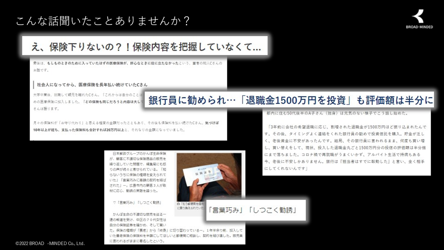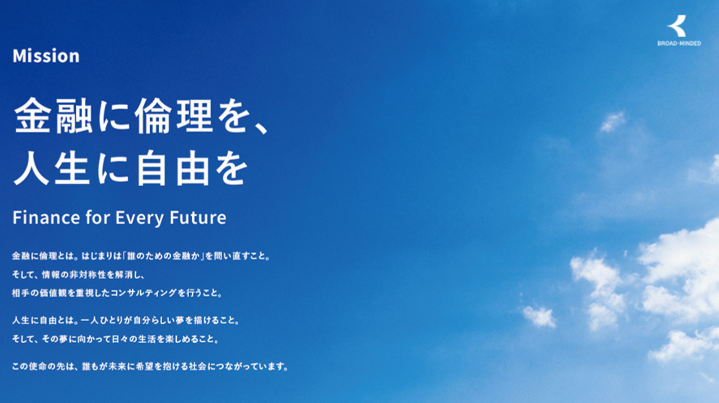 ブロードマインドでは、社員1人1人がお客様の未来に想いを馳せながら、改めて「誰のための金融なのか」を問い直してブロードマインド流のサービスを提供しています!
