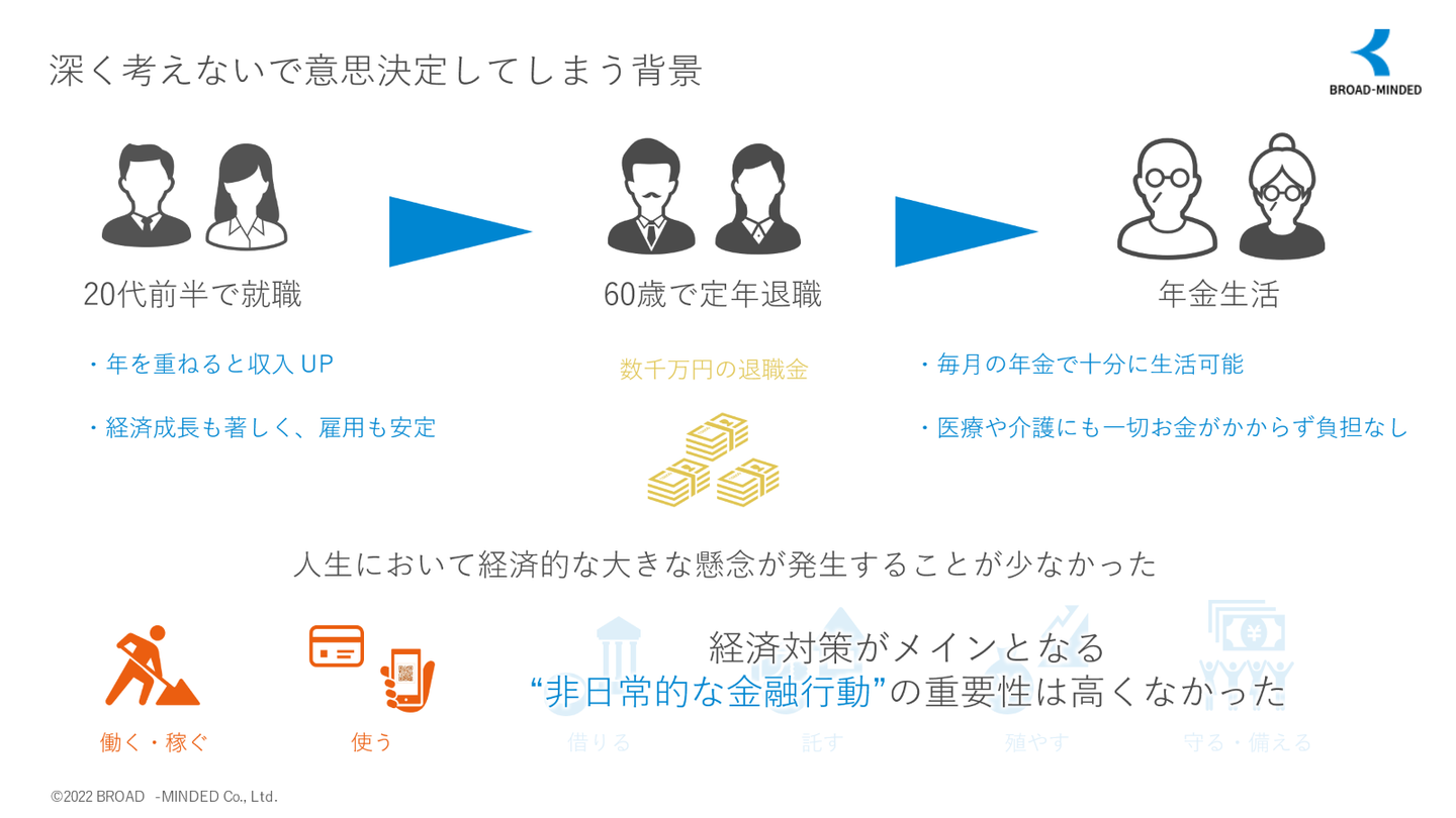 なぜネガティブな問題が起こるのかというと、昔は経済的に安定した時代が長らく続いていたために、そもそもお金について深く考える必要性を感じていなかったのではないかと考えています。