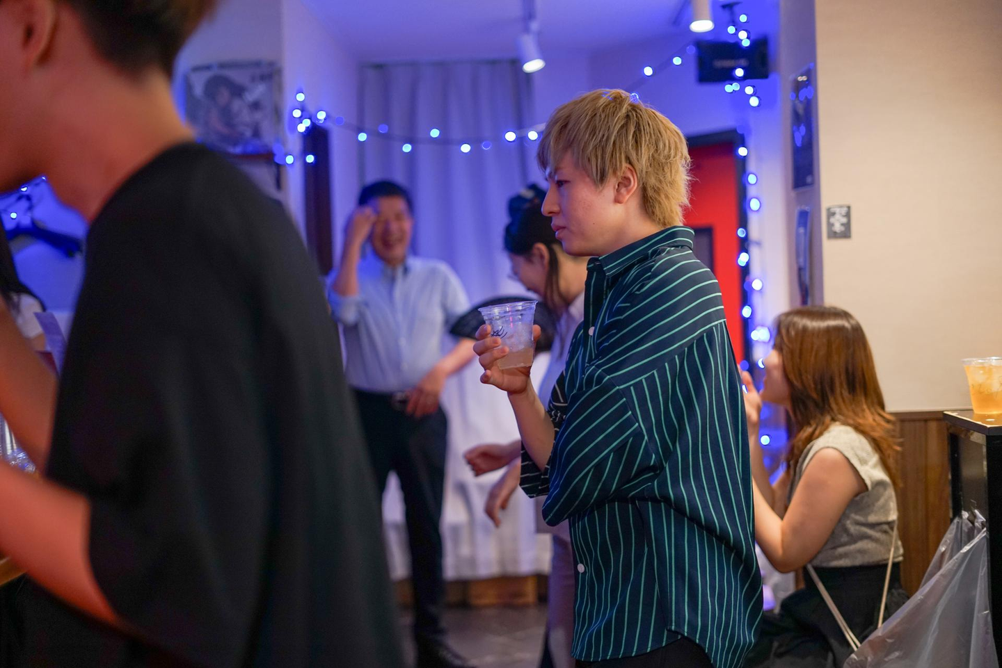 この会場でのパーティが2回目ともなると、店主と仲良くなるメンバーがいるのも面白かったですね。先程も登場したうっちーさんは、なぜか仮面ライダー談義でお店の名物店長さんとひと盛り上がり!そのスマートなビジュアルもあってか、店長さんに「ライダーくん」とあだ名をつけてもらって、それ以降もおかわりのたびに会話を交わしていました!