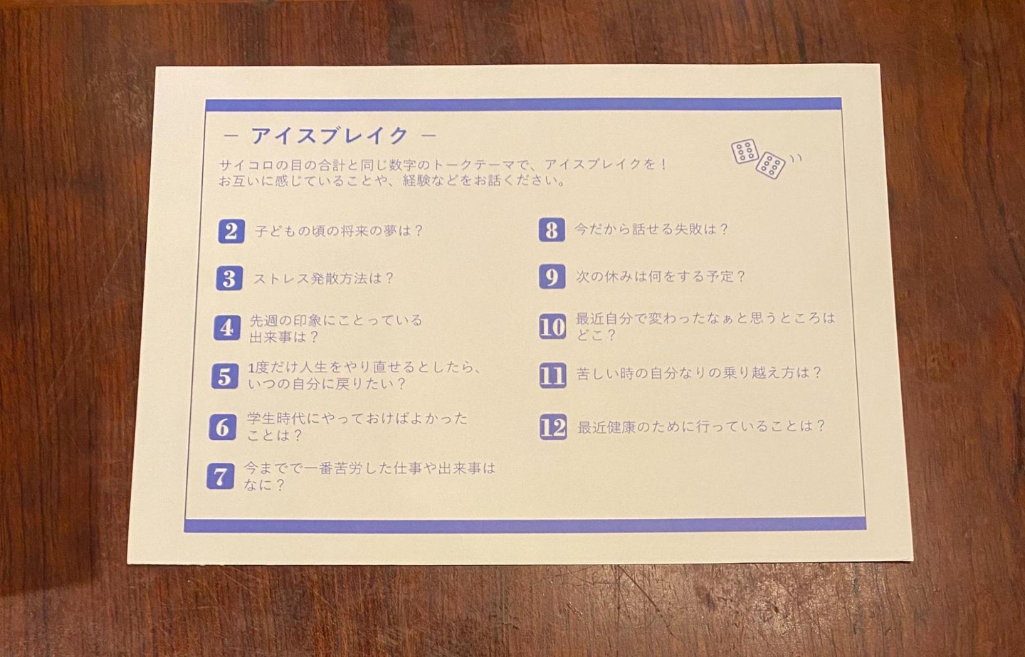 サイコロを使ったアイスブレイク など