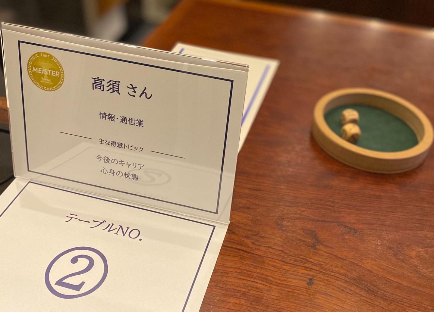 今回の対面イベントでは、社外の人(実際の企業で管理職を勤める1on1熟練上司)にキャリアやプライベートについてなど、気軽に相談できる場をご用意しました。