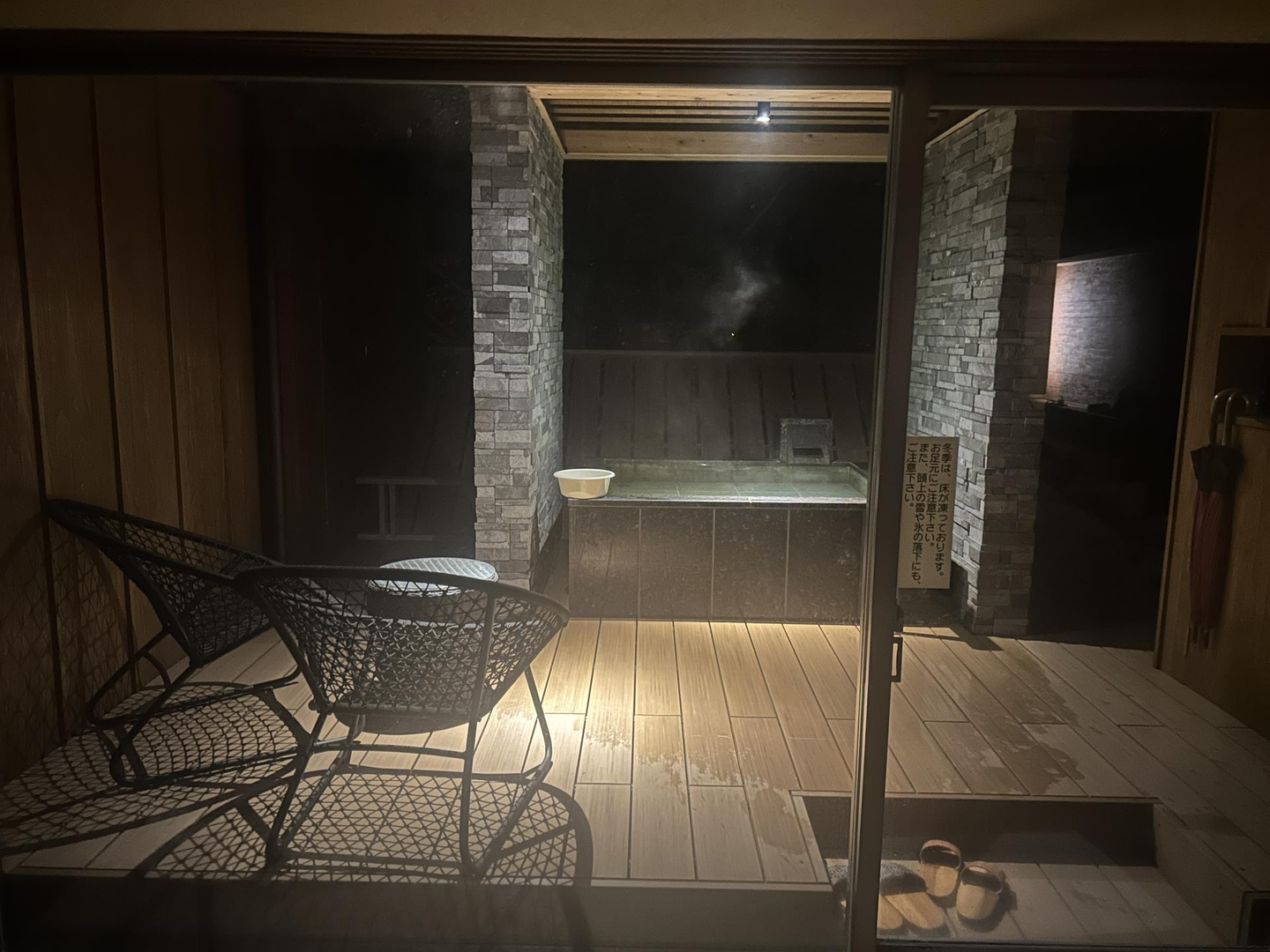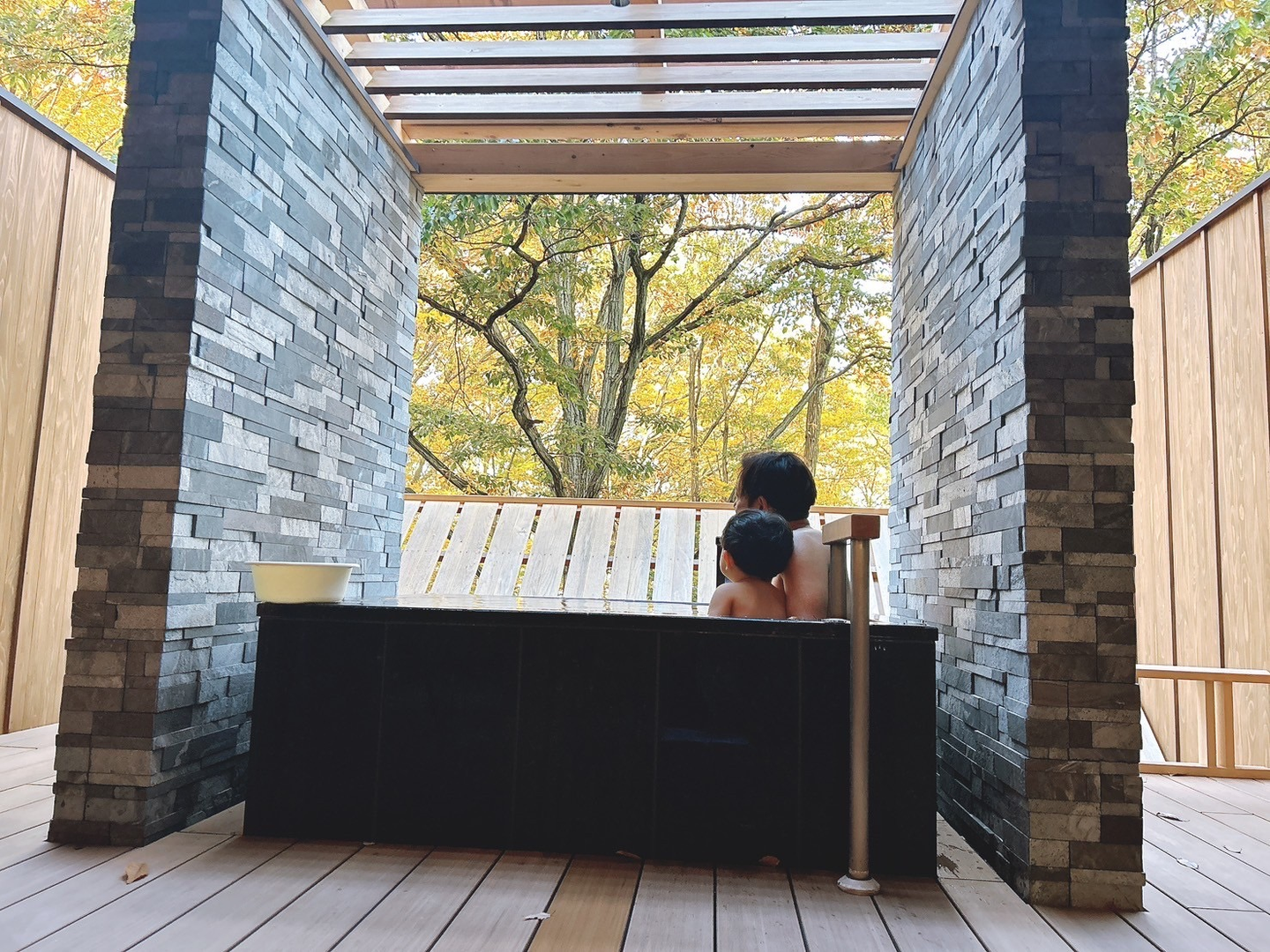 紅葉を観ながら風呂に入り、部屋から湯気の立つ風呂を眺め、浸かって良し眺めて良しの最上の癒し空間でした。