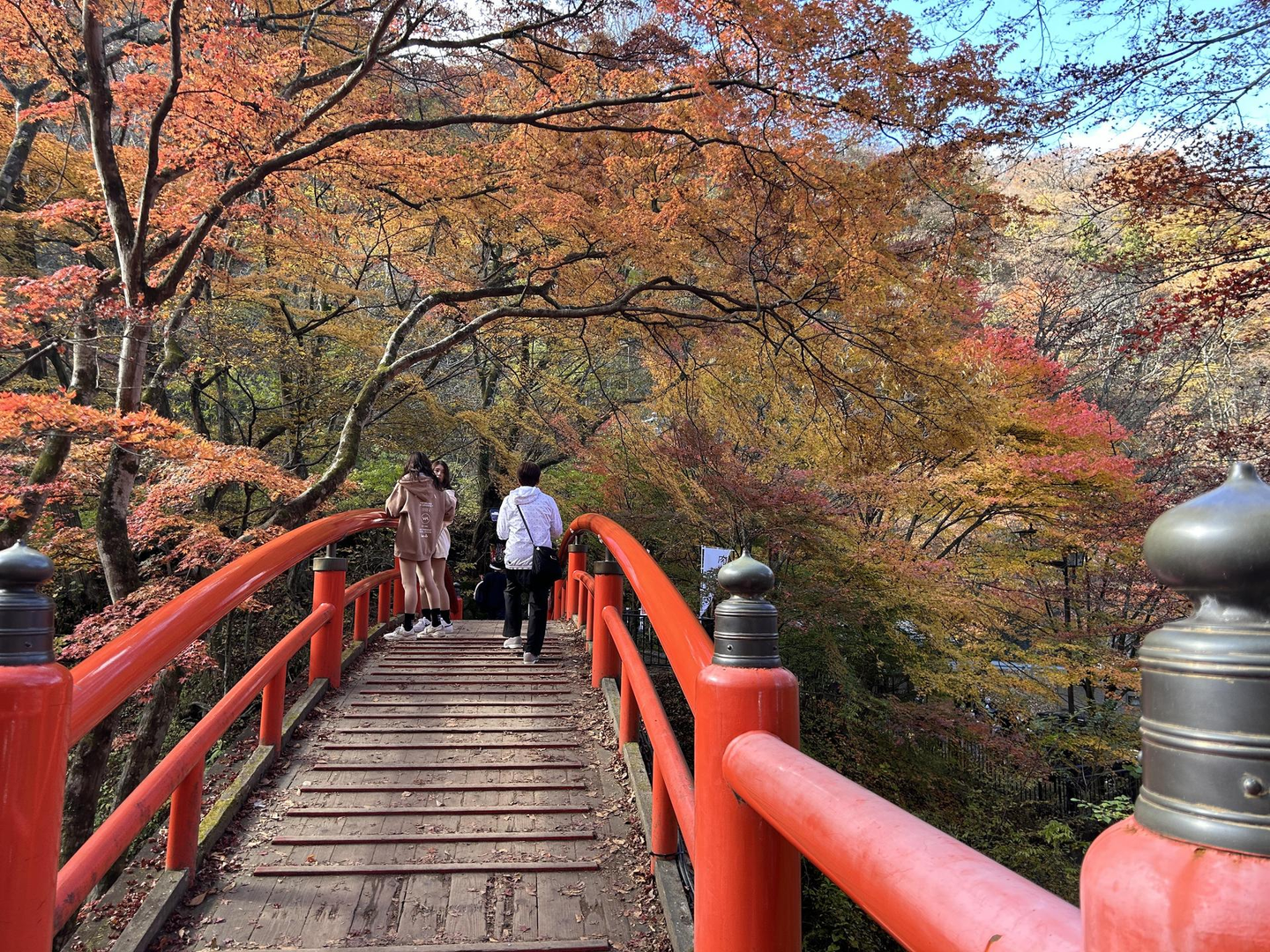 その石段を上がり切ったところにある河鹿橋は有名な紅葉スポットです。