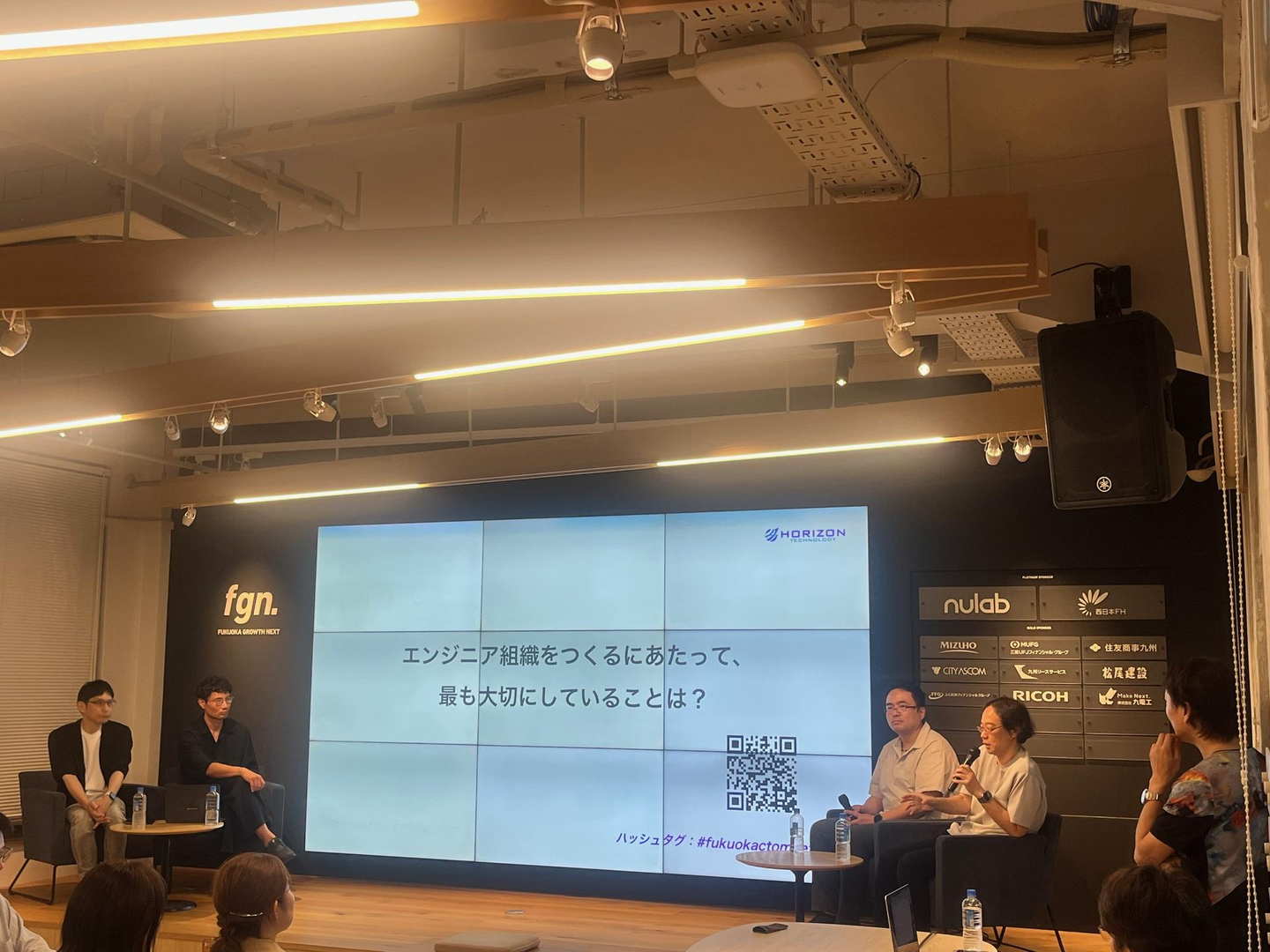イベントでは、4名の登壇者とモデレーターを務める弊社代表によるパネルディスカッションを実施。 技術経営・マネジメント・採用・人材育成など、現場で直面している課題について語っていただきました。さらに、会場からの質問にも登壇者がその場で回答する形式となり、まさに双方向・リアルな対話が飛び交うセッションとなりました。
