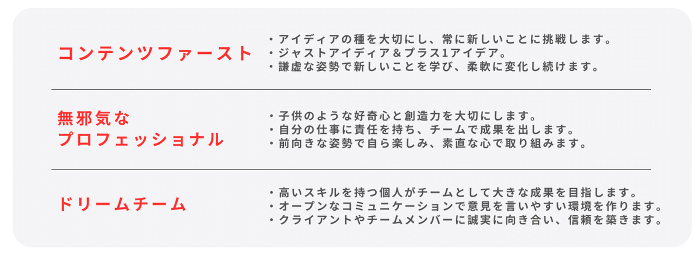私たちはコンテンツ制作会社ではなく、コンテンツを通じて、「毎日が楽しみになる体験」を提供していく会社であり続けたいと思っています。