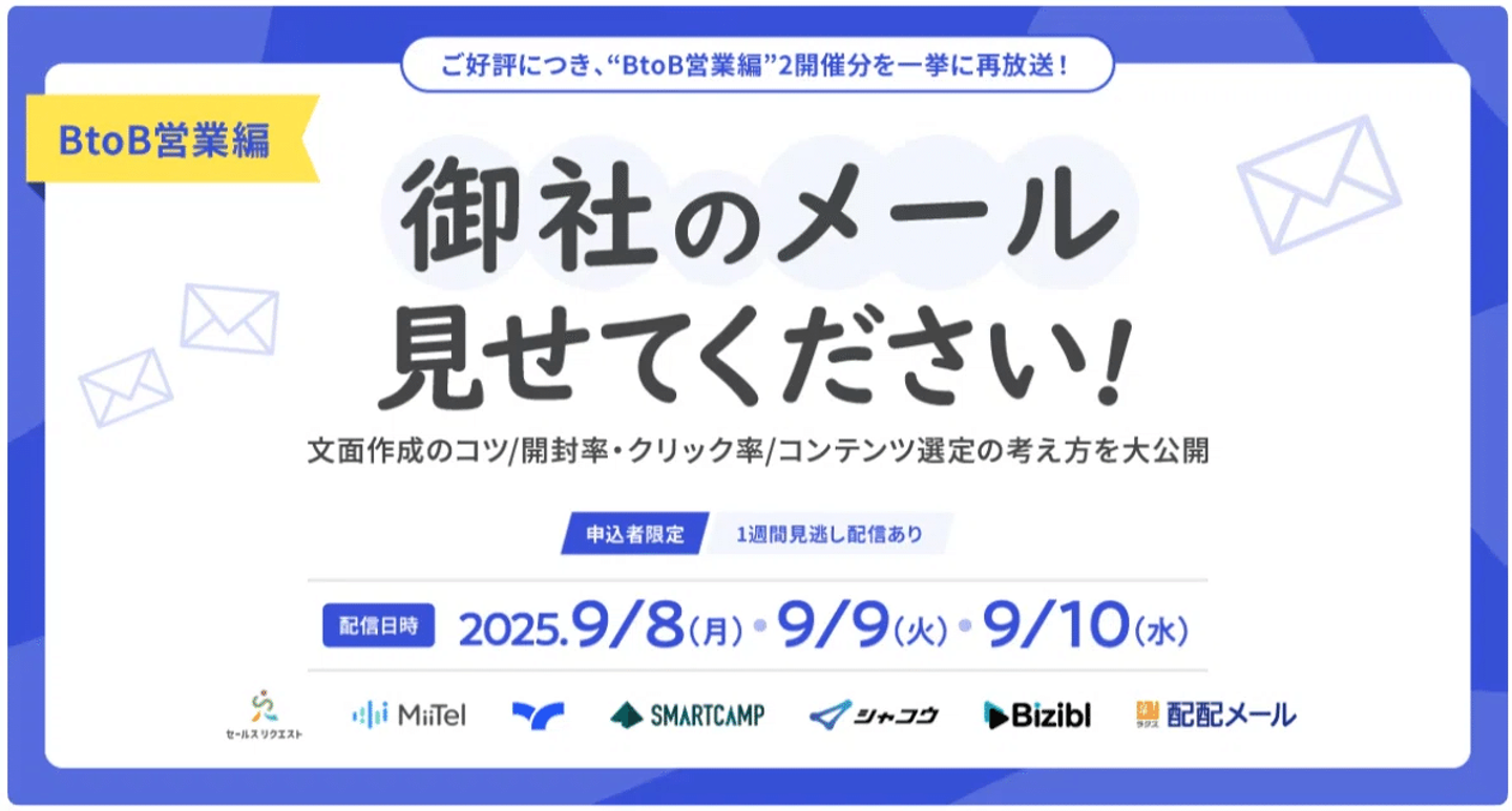 2025年9月18日(木)・19日(金)・22日(月)、Bizibl様が主催する「9月のインサイドセールス×ウェビナー強化月間」との連動企画に弊社のカスタマーdivマネージャー・太田が登壇いたしました。
