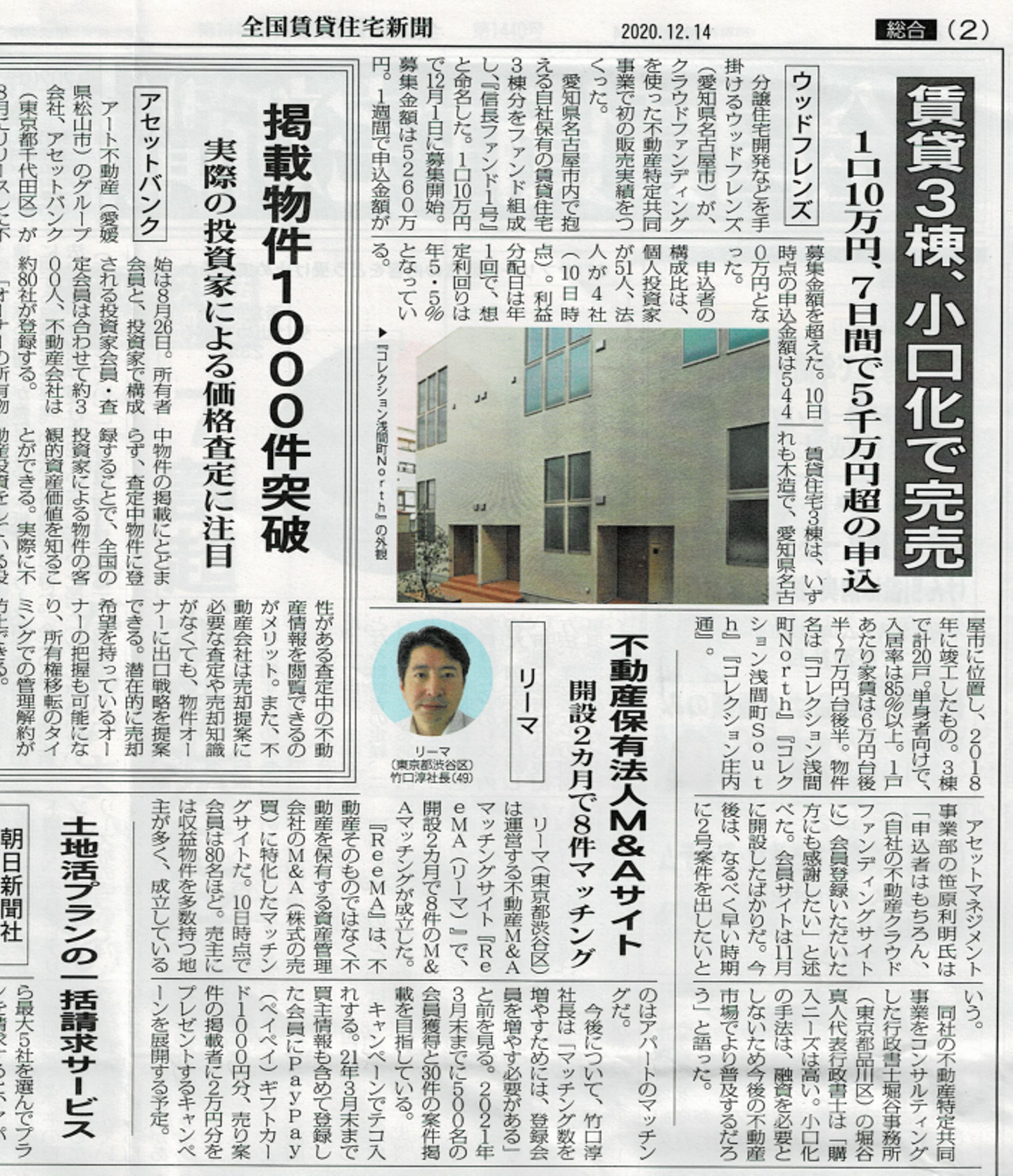 株式会社全国賃貸住宅新聞社(東京都中央区)が発行する週刊「全国賃貸住宅新聞」2021年4月12日号に弊社記事が掲載されました。