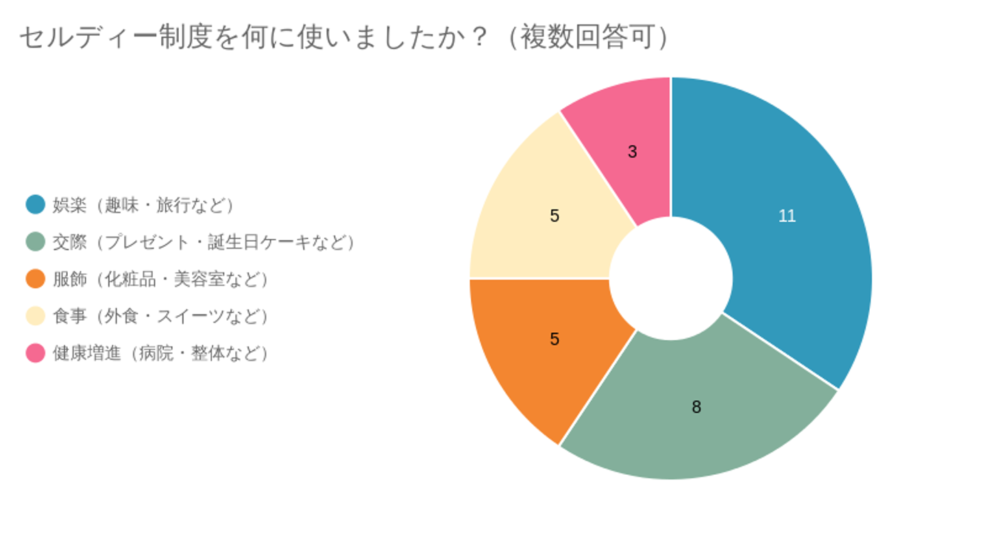 使い道はかなり分かれました! なかでも多かったのは「娯楽」のうちの「旅行」です。
