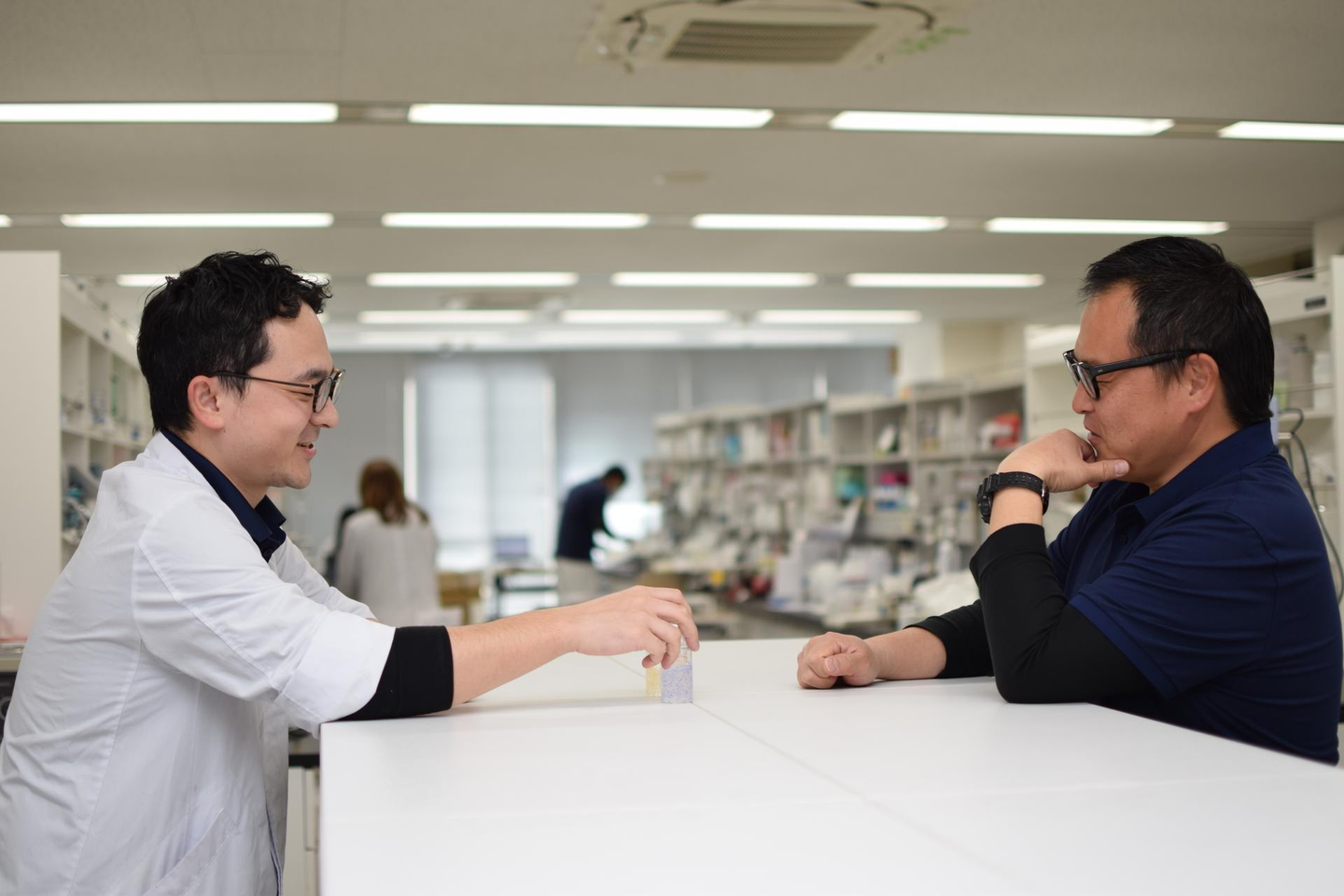 特に営業部とは密なコミュニケーションが必要で、研究部は営業部と一緒にチームとして開発を行っています。そのため、営業部のメンバーが研究室を歩いている、なんてことも当社では当たり前の光景です」