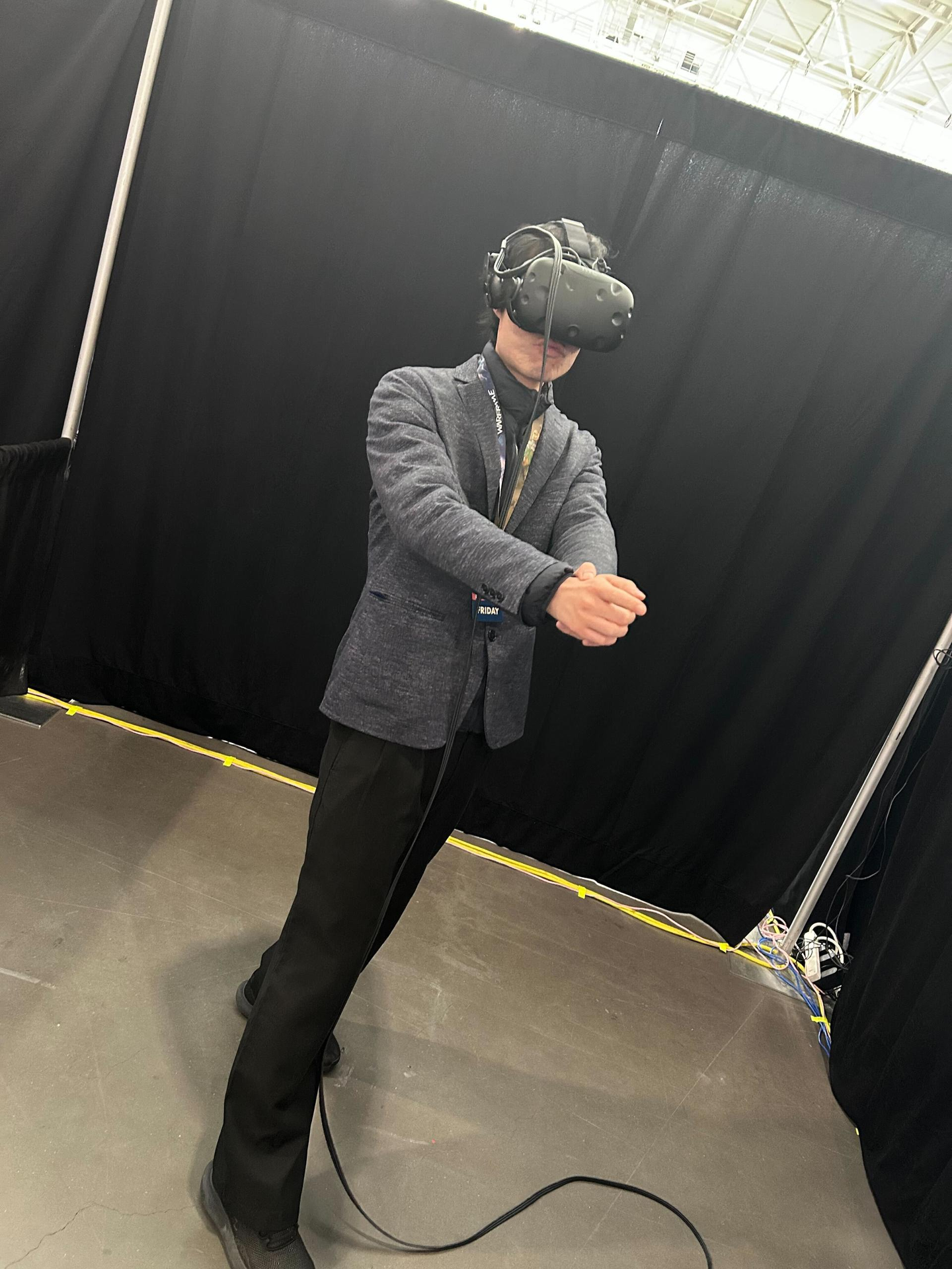 特に印象に残ったのは、会場の向かい側にいる相手とリアルに戦っているような感覚で楽しめる、いわば“リアル格闘ゲーム”のような体験でした。