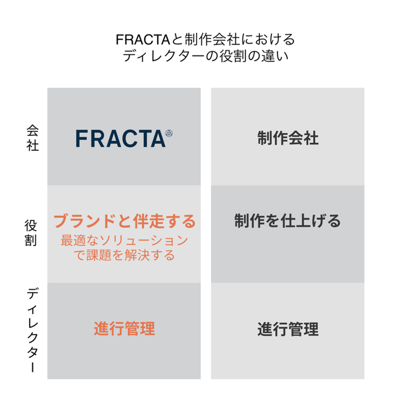 フラクタは「ブランディングで世界を豊かに」というビジョンのもと、ブランドの本当の課題を解決するために、問題の本質を捉え、戦略を立て、最適なアプローチを選択・実行している企業です。