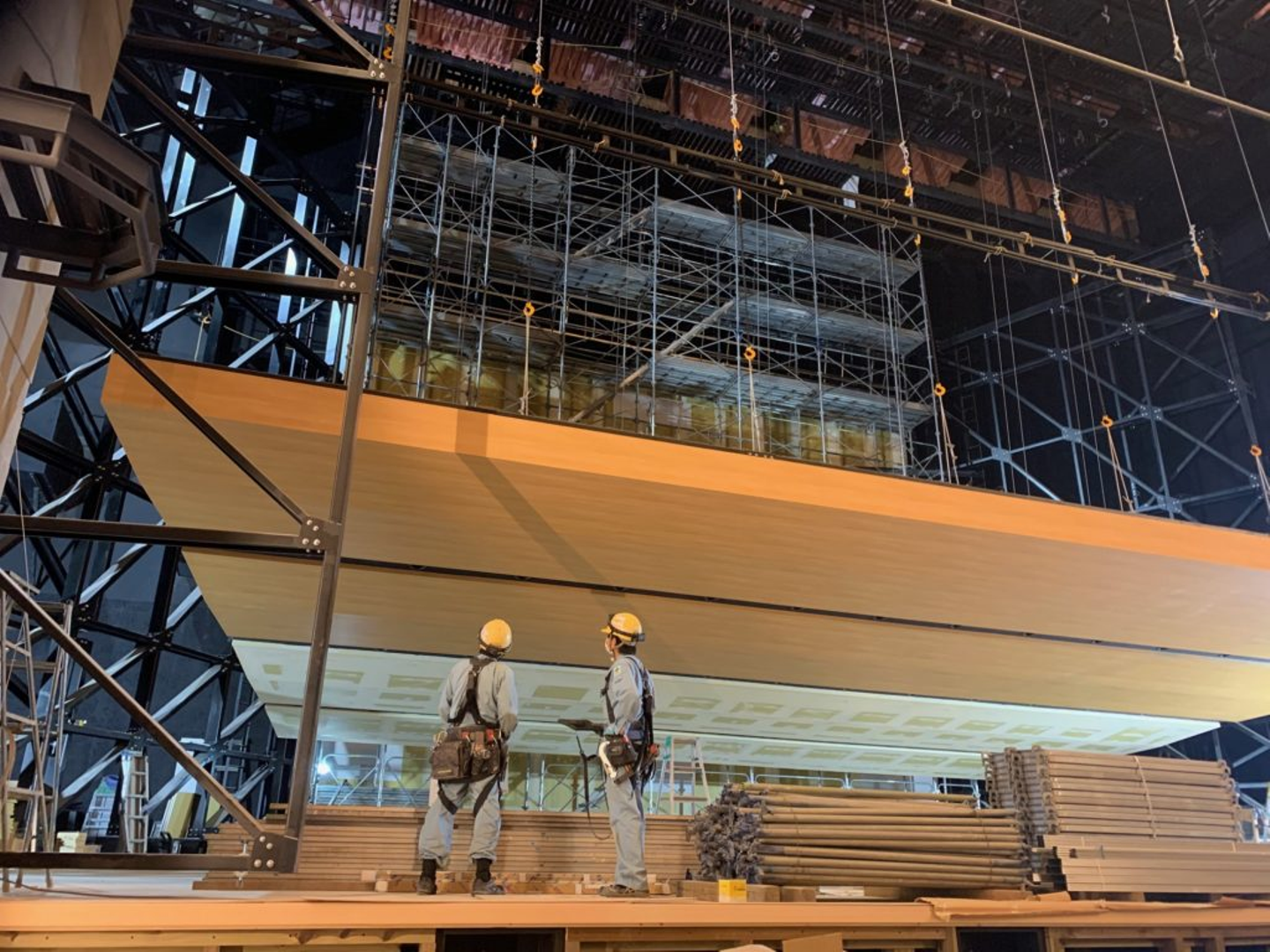 ケーブル等の接続のし忘れはないか等何度もチェックを行いました。特に器具の位置に関しては足場が解体される直前まで、