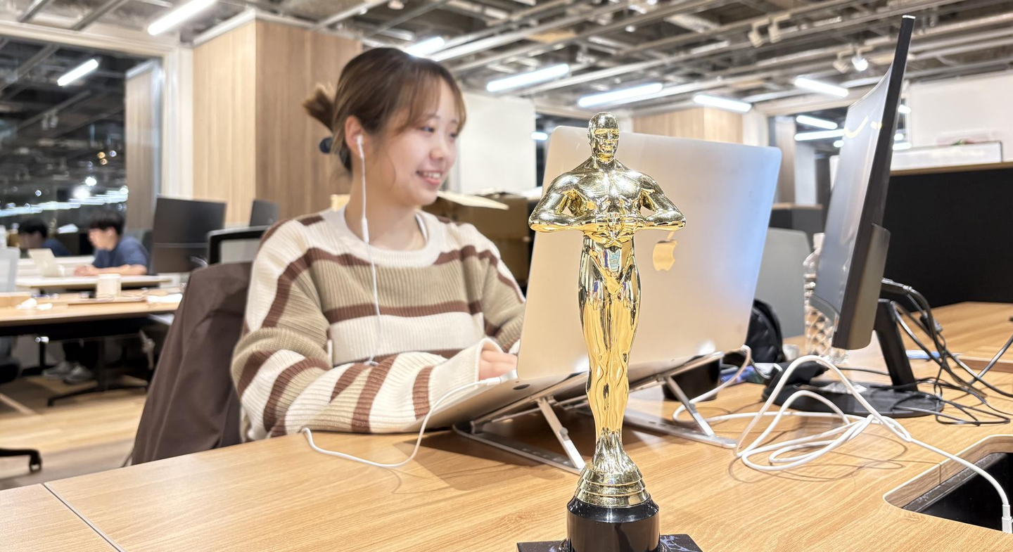 見てくれましたか?Hinaちゃんから毎月、月間MVP賞が発表されるんですけど2025年3月は私が選ばれました!イェーイ!選ばれた人は1ヶ月間そのトロフィーをデスクに置いておくんです。