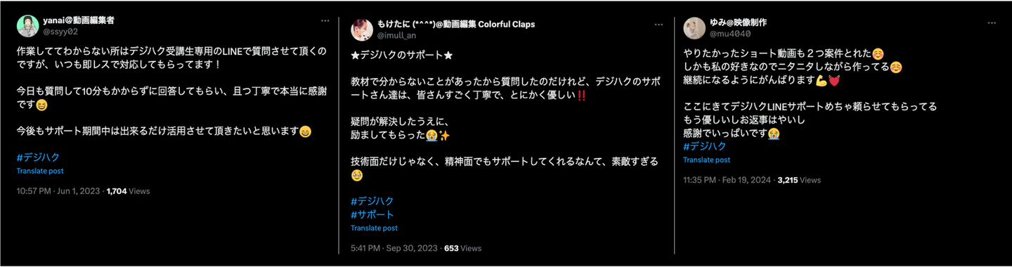 デジハクの仕事の中では、受講生から「フリーランスになれました!」とか、「副業で稼げるようになりました!」みたいな報告をくださるのがもう本当に嬉しいので、とにかくもっといっぱい聞きたいです笑