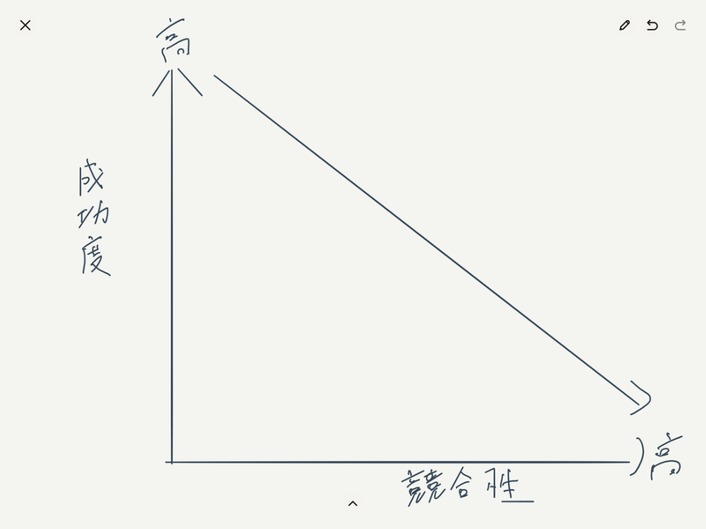 競合性が上がれば、ライバルが強くなるので施策の成功率が下がる